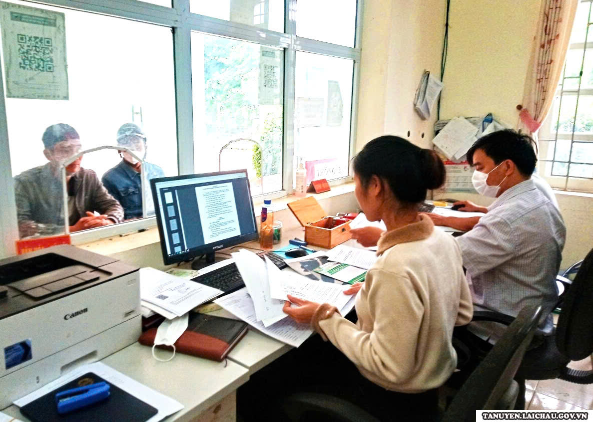 Ảnh: Người dân đến giao dịch tại Bộ phận Tiếp nhận và Trả kết xã Nậm Cần