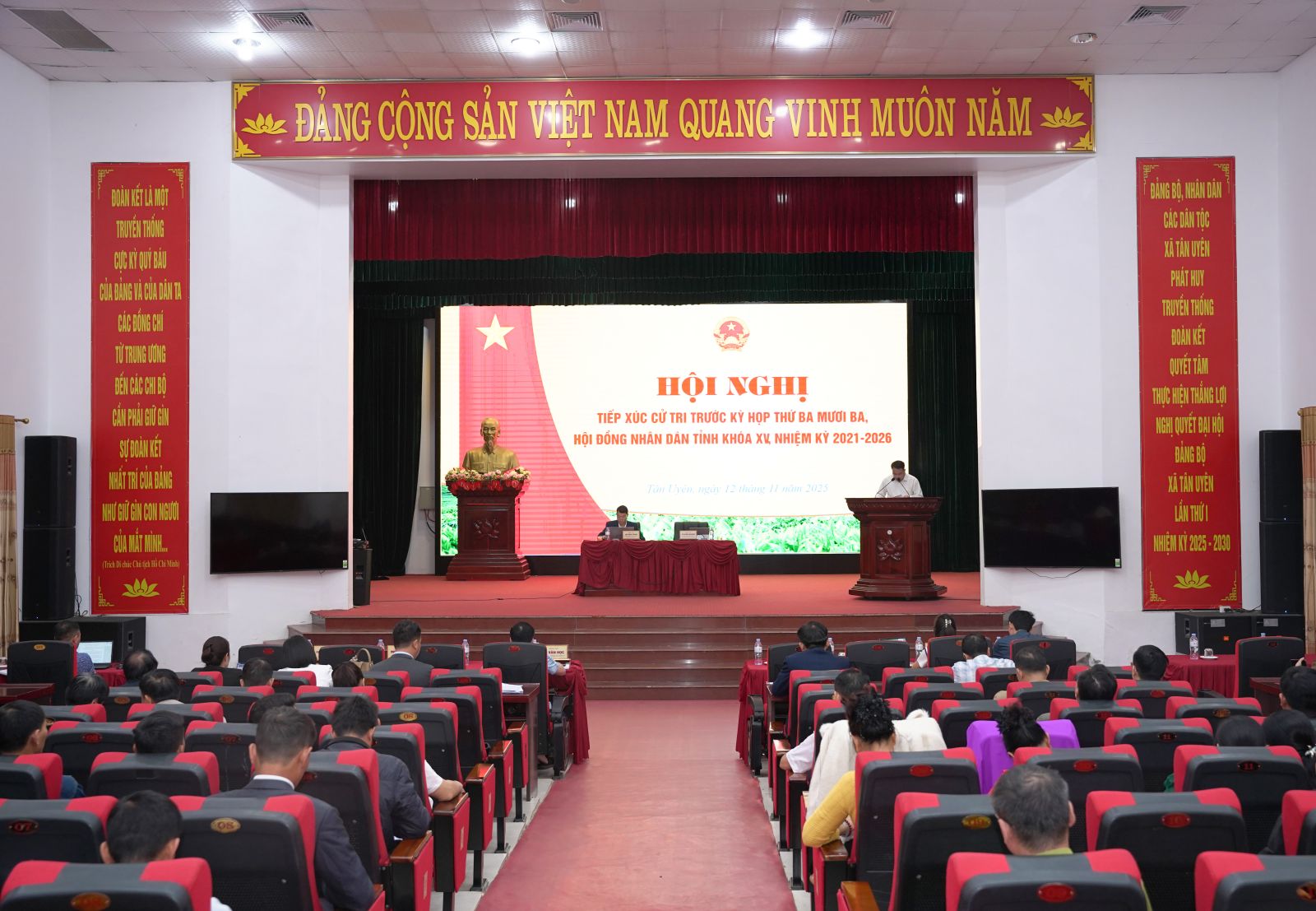 Sáng ngày 12/11/2025, tại xã Tân Uyên; Tổ đại biểu Hội đồng nhân dân tỉnh ứng cử tại xã Tân Uyên đã có buổi tiếp xúc cử tri trước kỳ họp thứ ba mươi ba Hội đồng nhân dân tỉnh khóa XV, nhiệm kỳ 2021-2026. Dự Hội nghị có đồng chí Lò Văn Nhung – Phó ban Nội chính Tỉnh ủy, đại biểu Hội đồng nhân dân tỉnh; đồng chí Lò Văn Tỉnh – Phó Chánh văn phòng Đảng ủy xã Nậm Sỏ, đại biểu Hội đồng nhân dân tỉnh ứng cử tại xã Tân Uyên. Tham dự Hội nghị về phía xã Tân Uyên có đồng chí Lò Văn Học – Phó Bí thư thư Thường trực Đảng ủy; lãnh đạo Thường trực HĐND, UBND, Ban Thường trực Ủy ban MTTQ Việt Nam xã; đại diện các ban, ngành, đoàn thể xã; các đơn vị ngành dọc đóng trên địa bàn, đại diện cử tri các thôn.