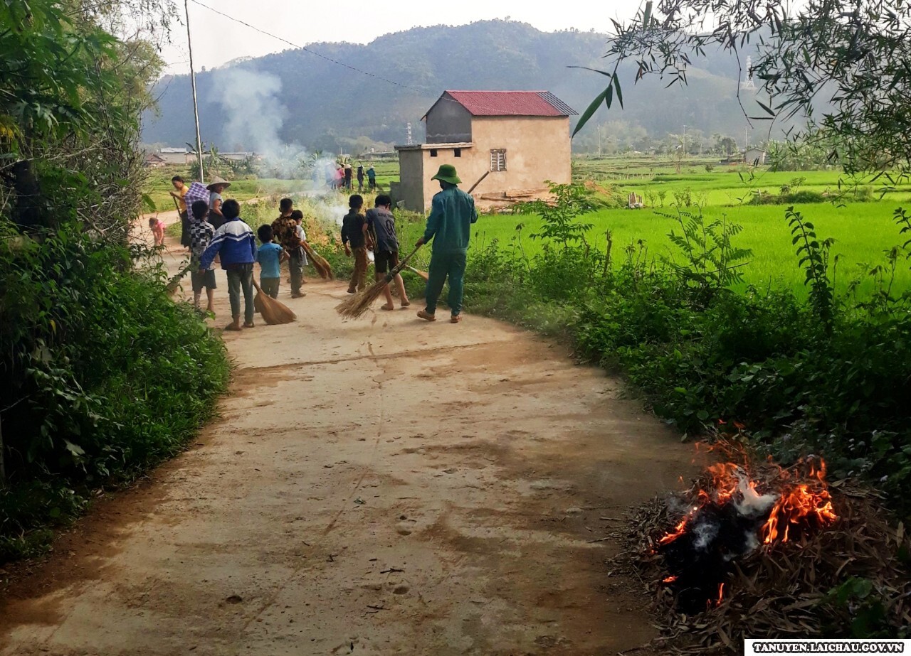 Ảnh: Nhân dân bản Nà Pắt vệ sinh đường nội bản