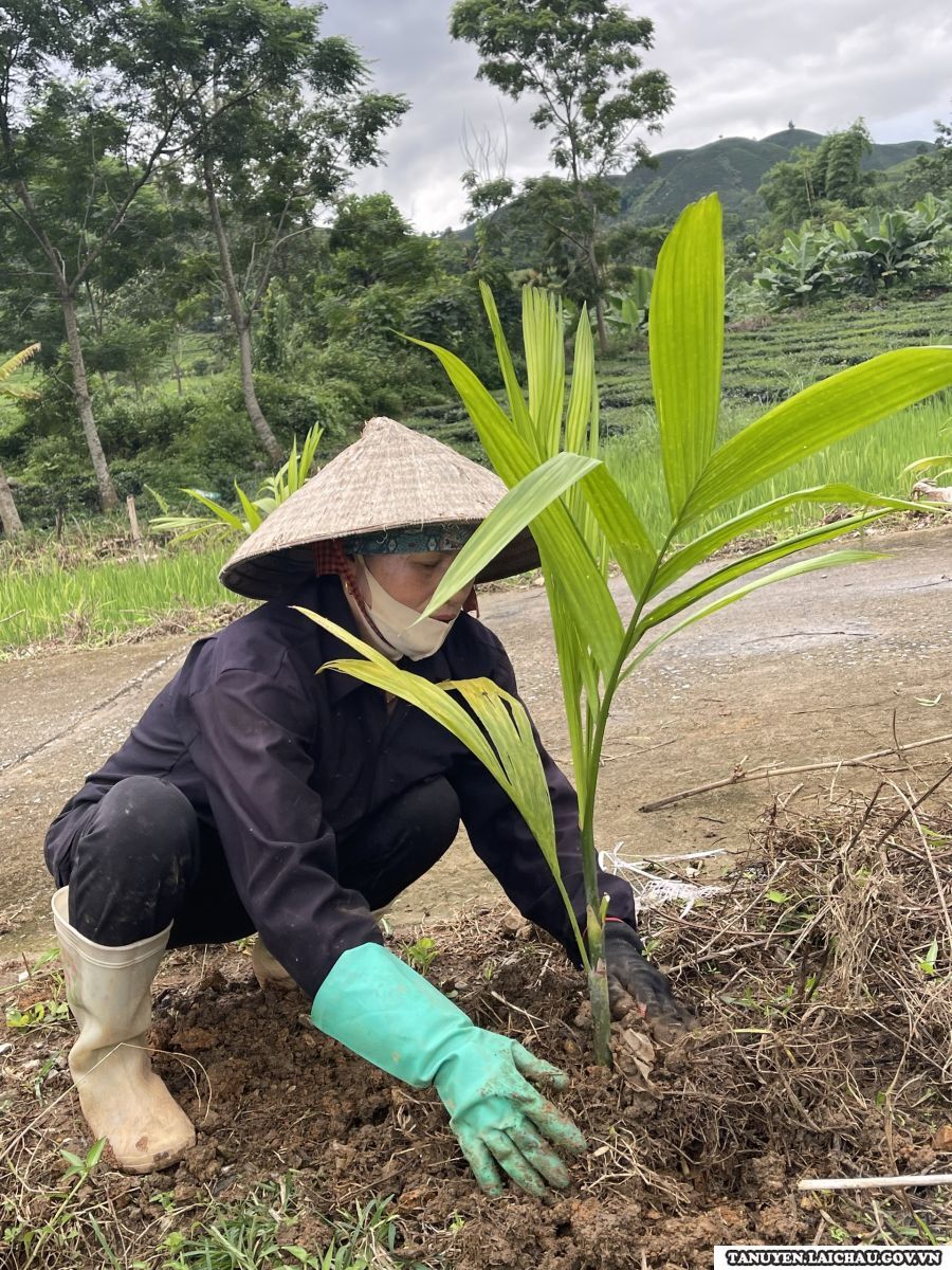 Ảnh: Nhân dân bản Phúc Khoa tham gia trồng Cau tuyến đường sản xuất của bản