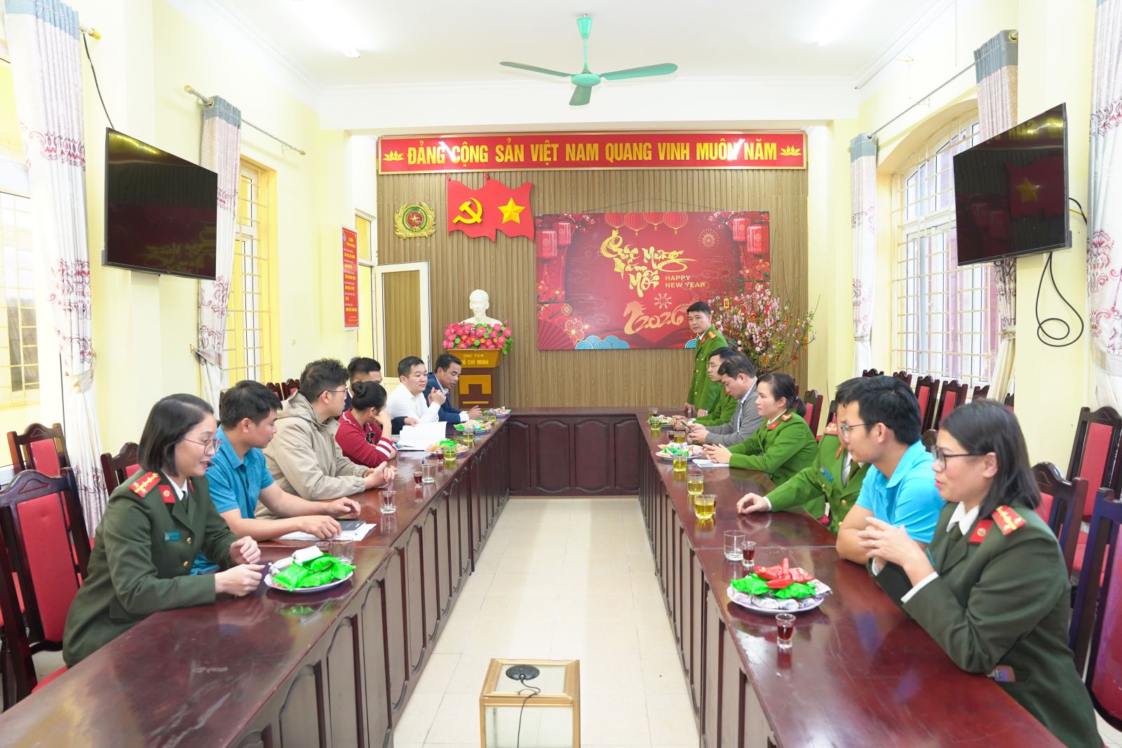 Ảnh: Lãnh đạo Công an xã Tân Uyên báo với đoàn công tác