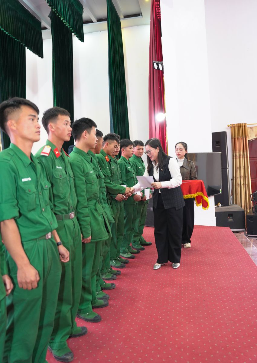 Ảnh: Đồng chí Trương Thị Huế - Ủy viên BTV, Phó Chủ tịch HĐND xã trao quà cho các quân nhân