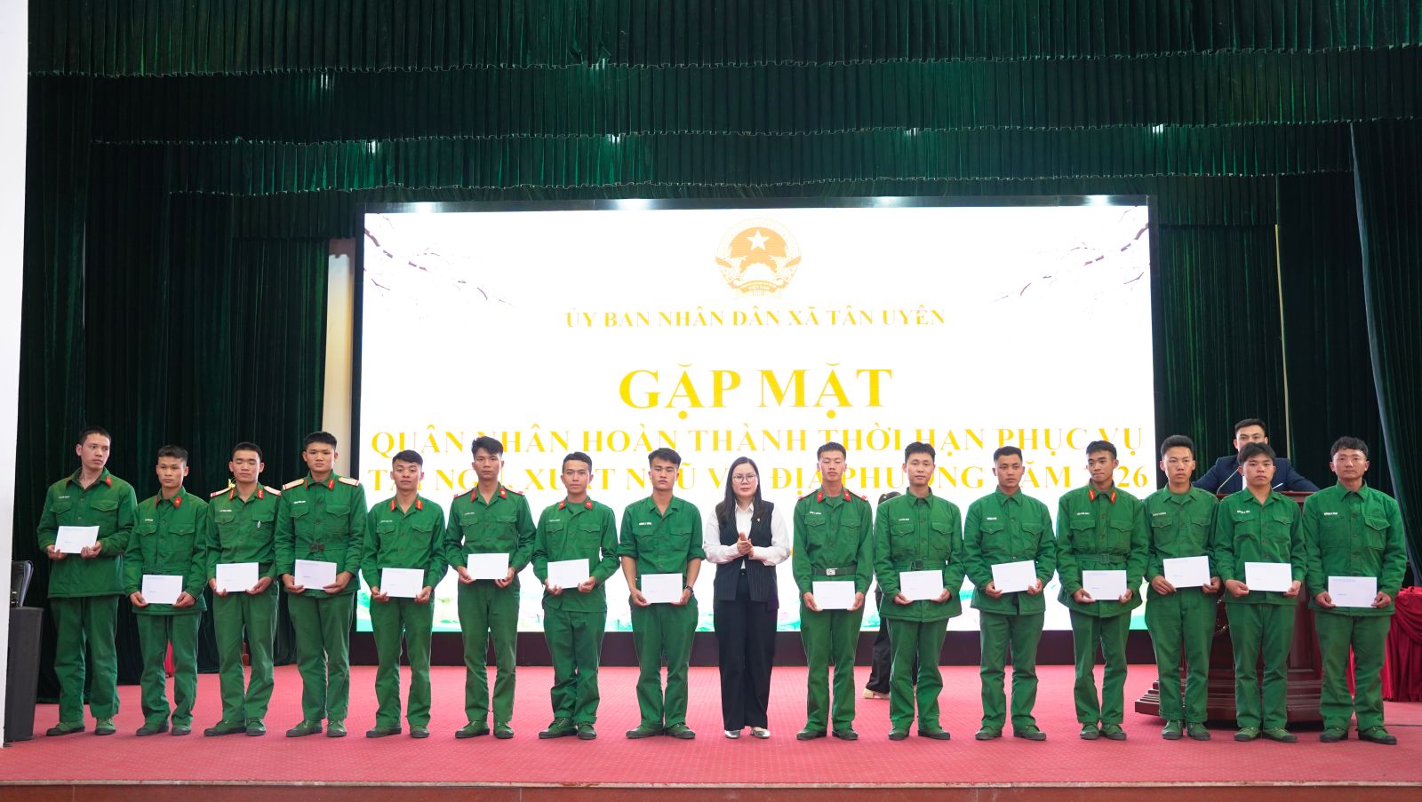 Trong đợt này, xã Tân Uyên có 38 quân nhân hoàn thành nghĩa vụ quân sự, xuất ngũ trở về địa phương. Trong thời gian tại ngũ, các đồng chí luôn nêu cao tinh thần trách nhiệm, chấp hành nghiêm kỷ luật quân đội, tích cực rèn luyện, học tập và hoàn thành tốt nhiệm vụ được giao; trong đó có nhiều đồng chí hoàn thành xuất sắc nhiệm vụ. Đặc biệt, có 03 đồng chí vinh dự được kết nạp vào Đảng Cộng sản Việt Nam trong quân đội, thể hiện sự trưởng thành về tư tưởng chính trị và phẩm chất đạo đức của quân nhân xuất ngũ.