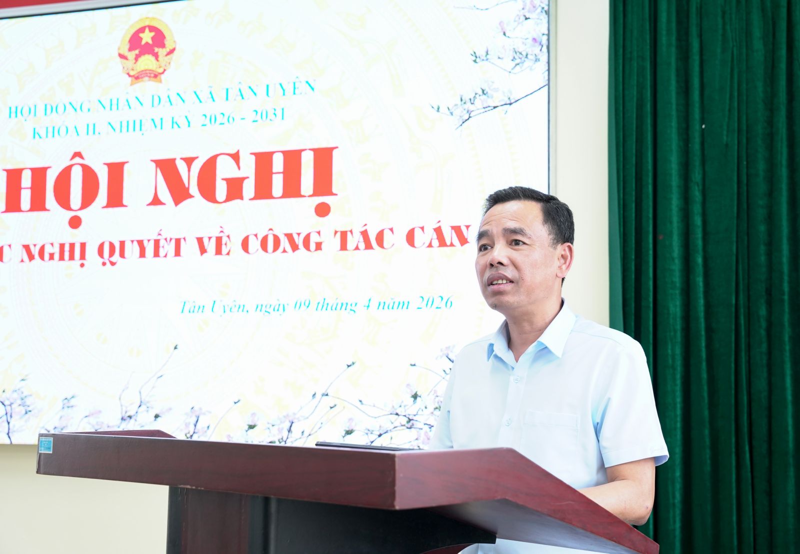 Chiều ngày 9/4, Thường trực HĐND xã Tân Uyên tổ chức Hội nghị công bố Nghị quyết phê chuẩn Phó Trưởng ban, Ủy viên các Ban HĐND xã khóa II nhiệm kỳ 2026-2031. Dự và chủ trì Hội nghị có đồng chí Nguyễn Minh Hiệu - Ủy viên Ban Chấp hành Đảng bộ tỉnh, Bí thư Đảng ủy, Chủ tịch HĐND xã; đồng chí Trương Thị Huế - Ủy viên Ban Thường vụ, Phó chủ tịch HĐND xã; các đồng chí là Trưởng ban, Phó Trưởng ban và Ủy viên các Ban HĐND xã; lãnh đạo Văn phòng HĐND và UBND xã.