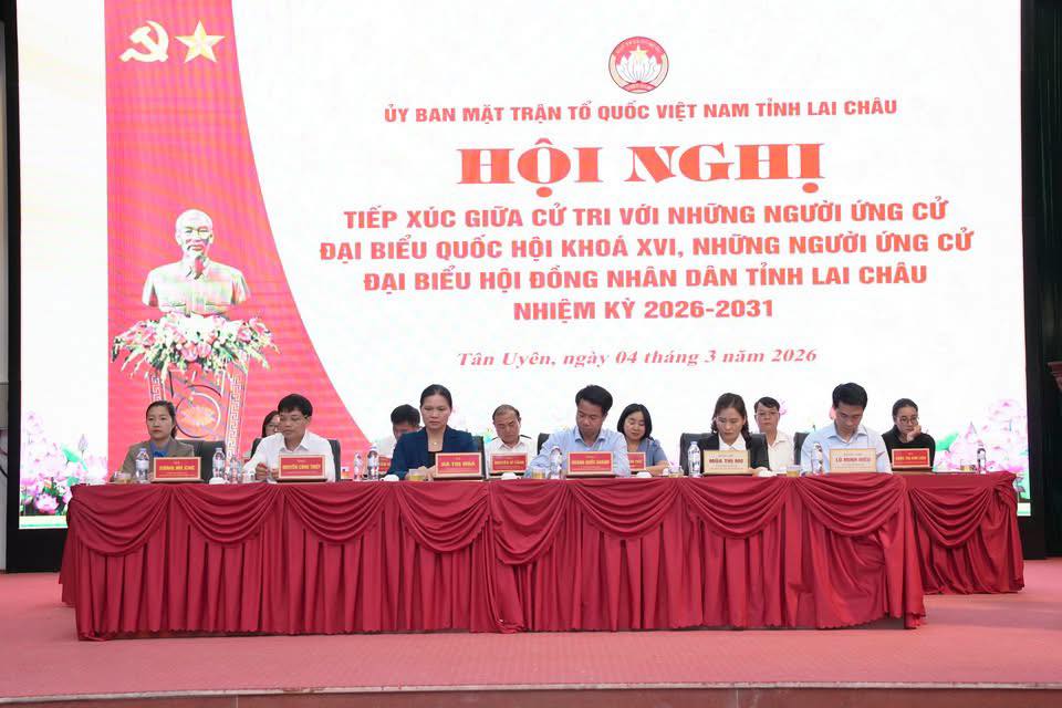 Chiều 04/3, Ủy ban Mặt trận Tổ quốc (MTTQ) Việt Nam tỉnh Lai Châu, tổ chức Hội nghị tiếp xúc cử tri với những người ứng cử Đại biểu Quốc hội (ĐBQH) khóa XVI và Hội đồng Nhân dân (HĐND) các cấp, nhiệm kỳ 2026-2031, tại đơn vị bầu cử số 1, xã Tân Uyên.
