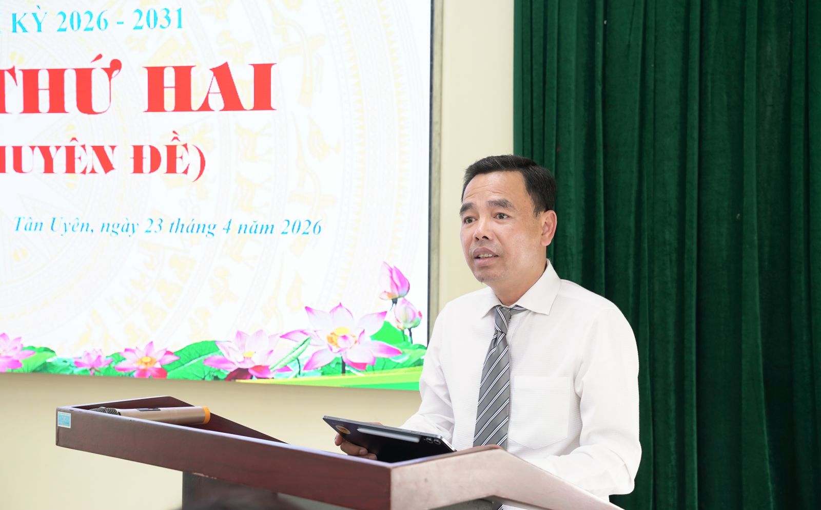 Chiều ngày 23/4, HĐND xã Tân Uyên khoá II, nhiệm kỳ 2026-2031 tổ chức kỳ họp thứ hai (kỳ họp chuyên đề). Đồng chí nguyễn Minh Hiệu - Ủy viên BCH Đảng bộ tỉnh, Bí thư Đảng ủy, Chủ tịch HĐND xã; đồng chí Trương Thị Huế - Ủy viên BTV Đảng ủy, Phó Chủ tịch HĐND xã dự chủ trì kỳ họp. Tham dự kỳ họp có đồng chí Lò Văn Học – Phó Bí thư Thường trực Đảng ủy; đồng chí Chu Văn Thanh – Phó Bí thư, Chủ tịch UBND xã; lãnh đạo UBND – UBMTTQVN xã; các ban, ngành, đoàn thể chính trị xã hội xã; Đại biểu HĐND xã khóa II, nhiệm kỳ 2026-2031.