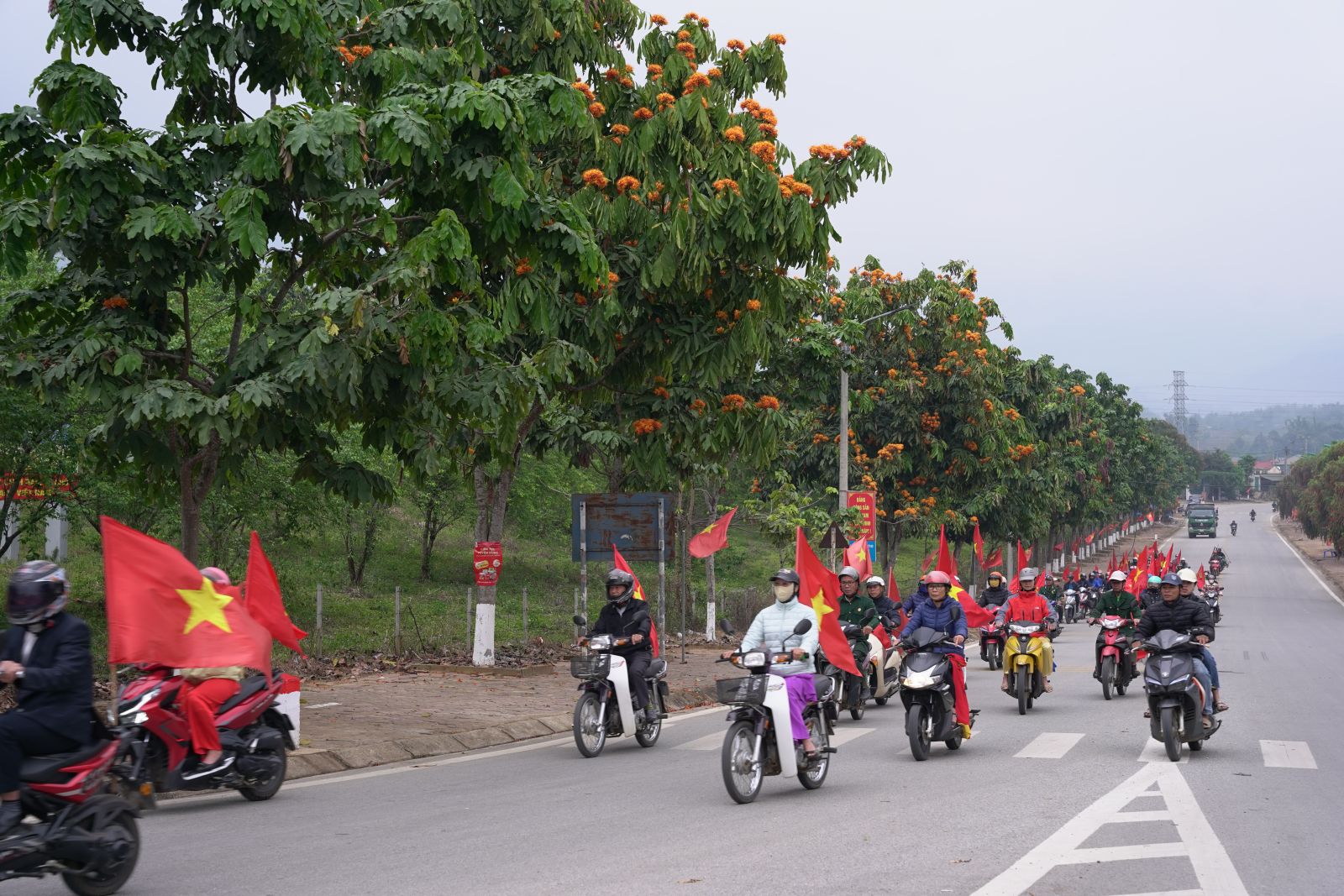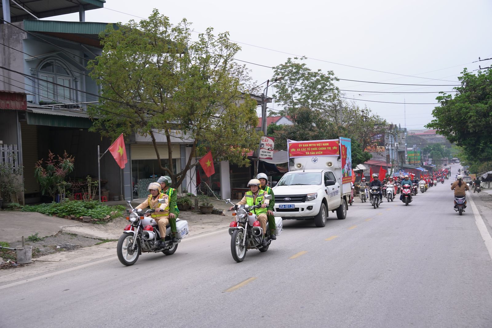 Đoàn cổ động diễu hành từ Trung tâm hành chính xã Tân Uyên và dọc quốc lộ 32 từ thôn Phiêng Phát đến thôn 5 các trục đường chính của xã. Với cờ Tổ quốc, băng rôn, khẩu hiệu tuyên truyền về ý nghĩa, tầm quan trọng của ngày bầu cử. Hoạt động thu hút sự quan tâm, hưởng ứng của đông đảo Nhân dân, góp phần lan tỏa không khí vui tươi, phấn khởi, nâng cao nhận thức của cử tri về quyền và nghĩa vụ tham gia bầu cử.