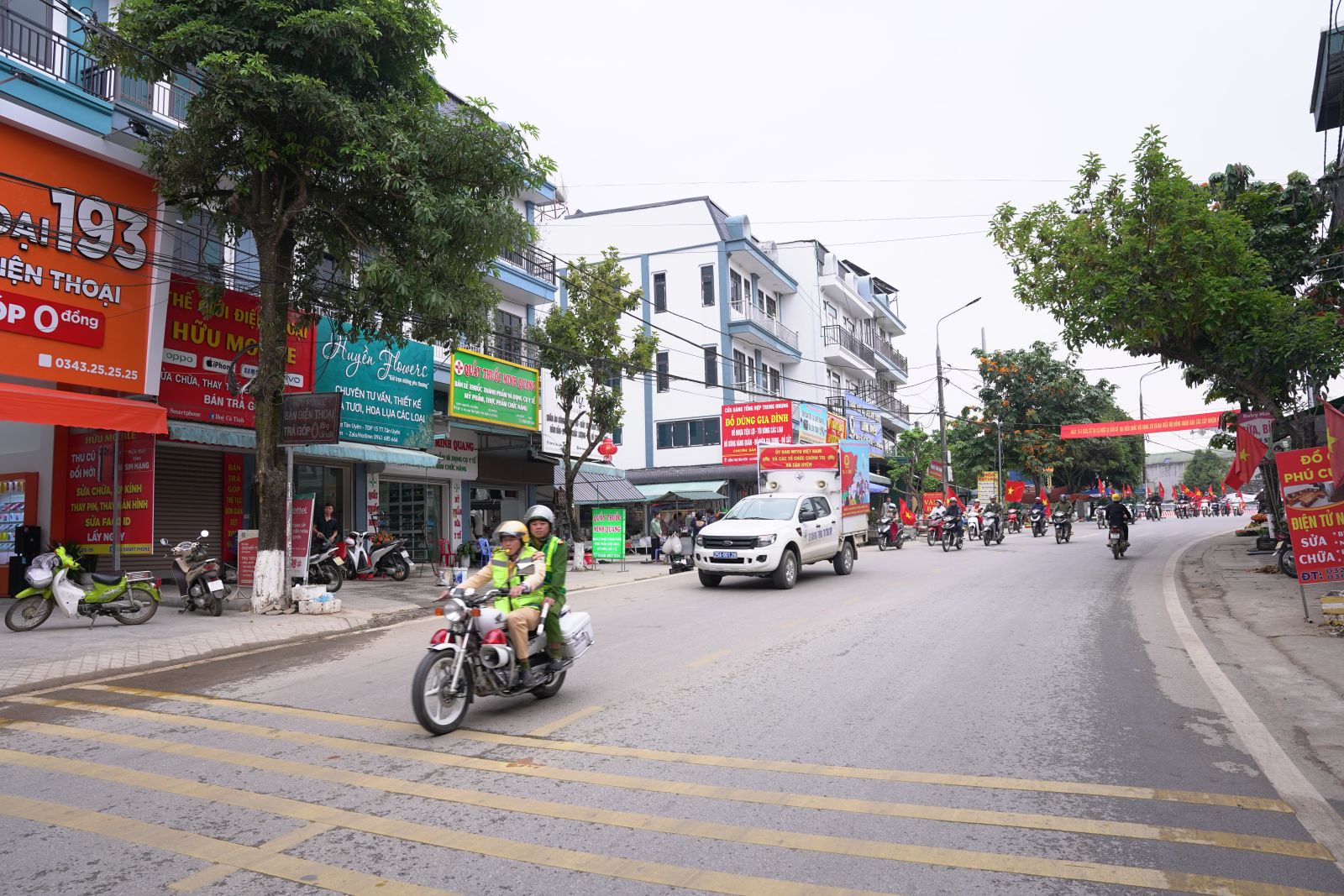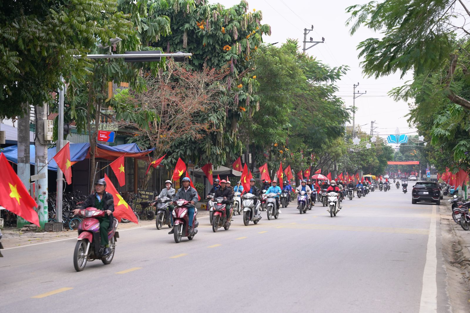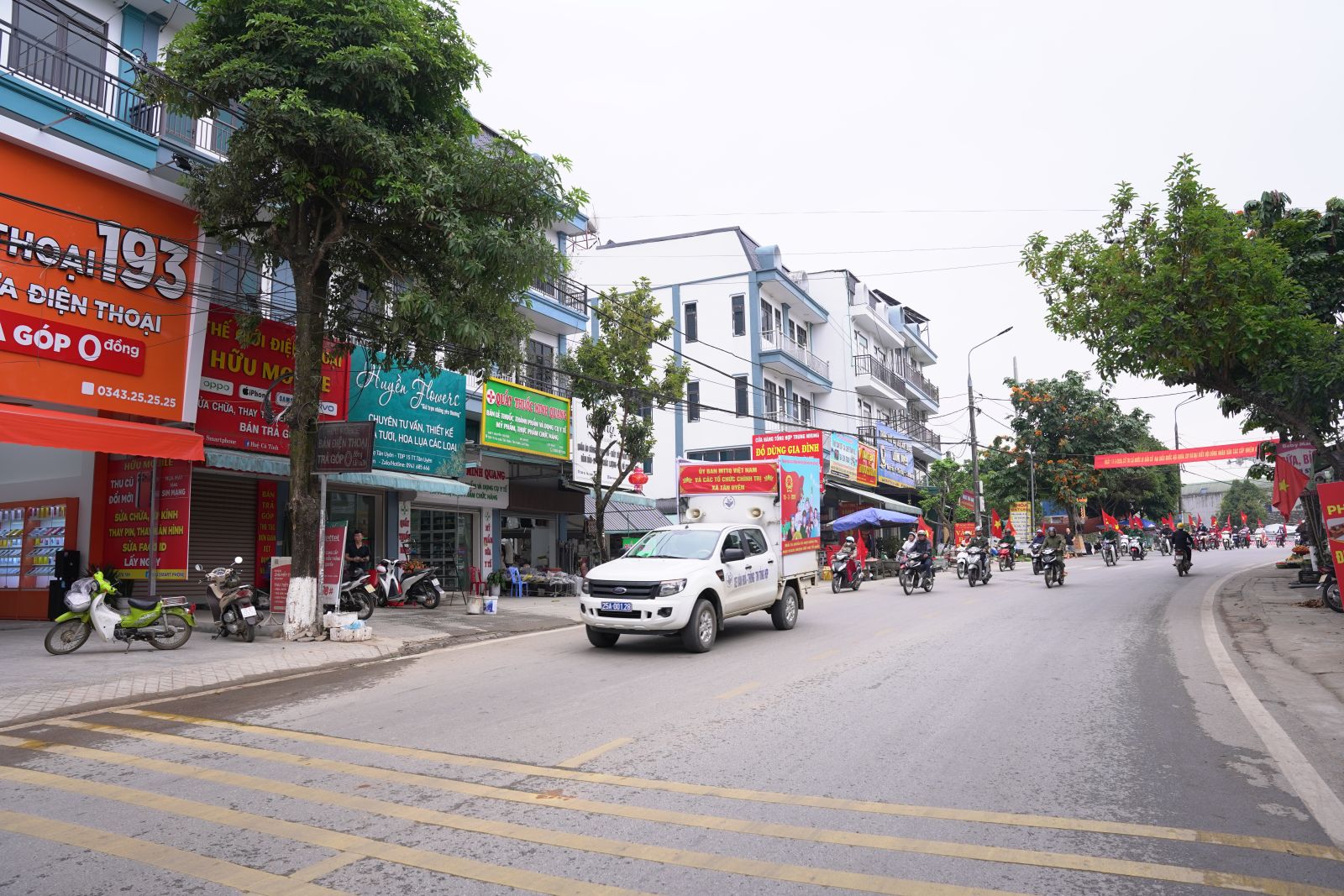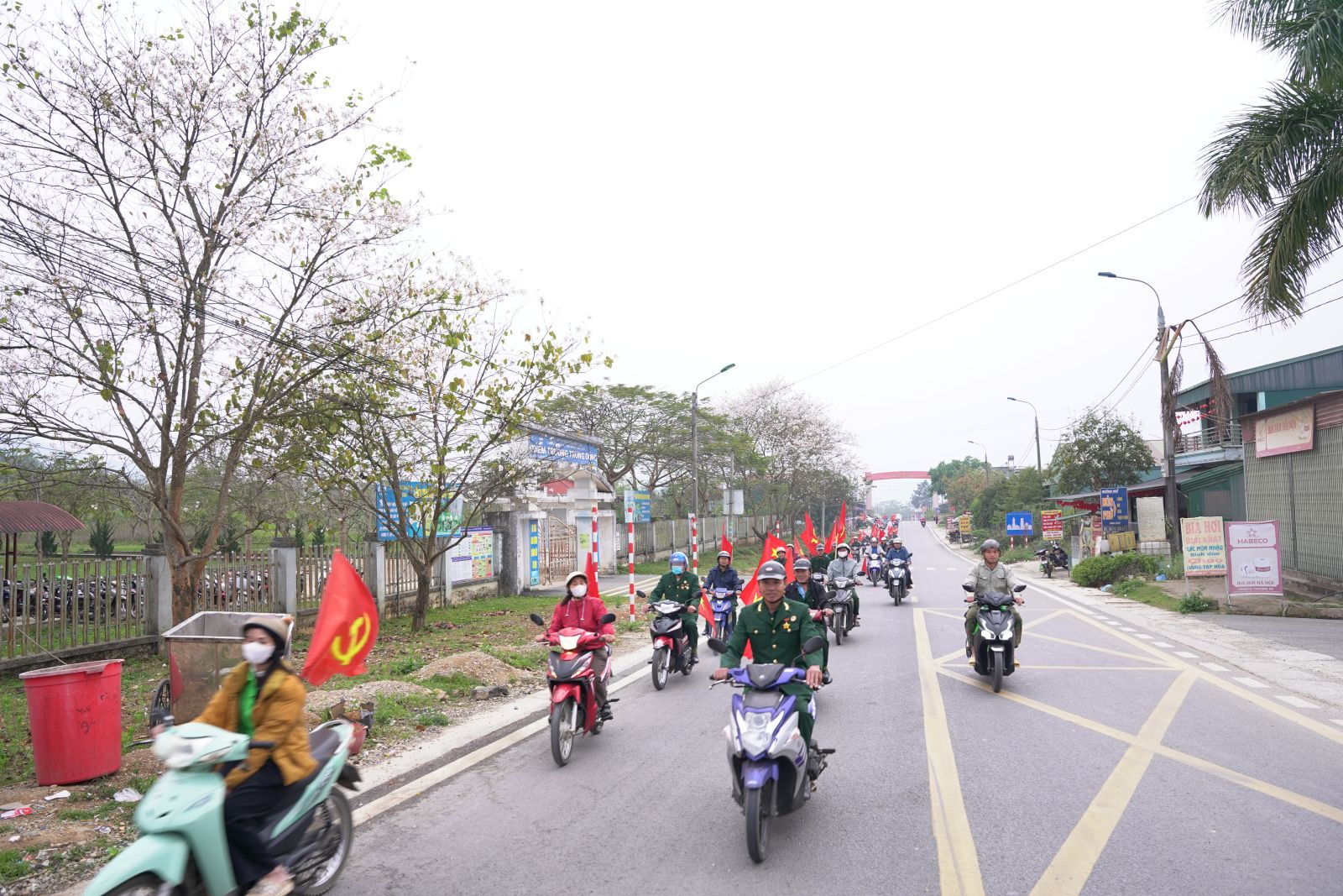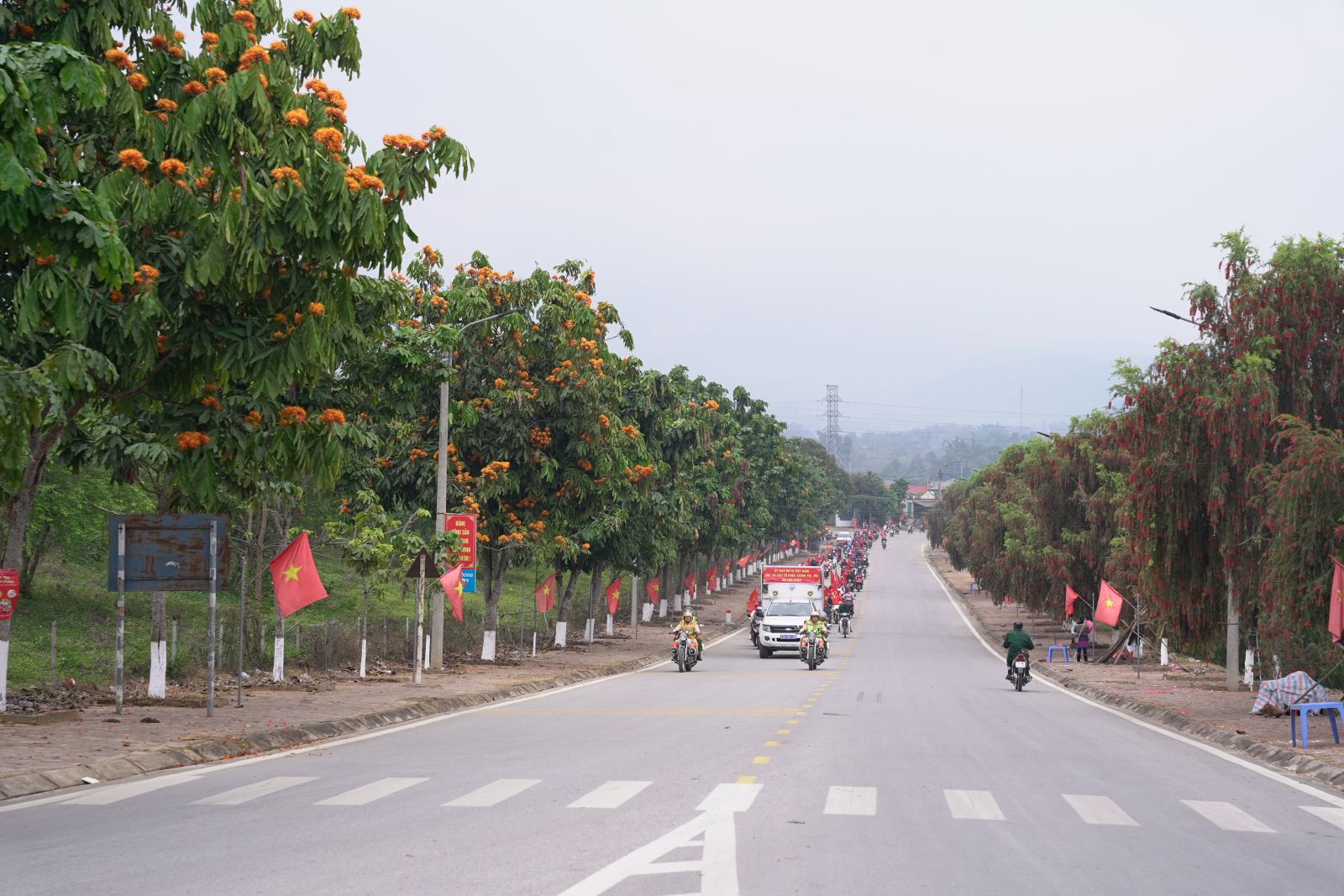 Ảnh: Đoàn cổ động diễu hành qua các trục đường chính của xã Tân Uyên