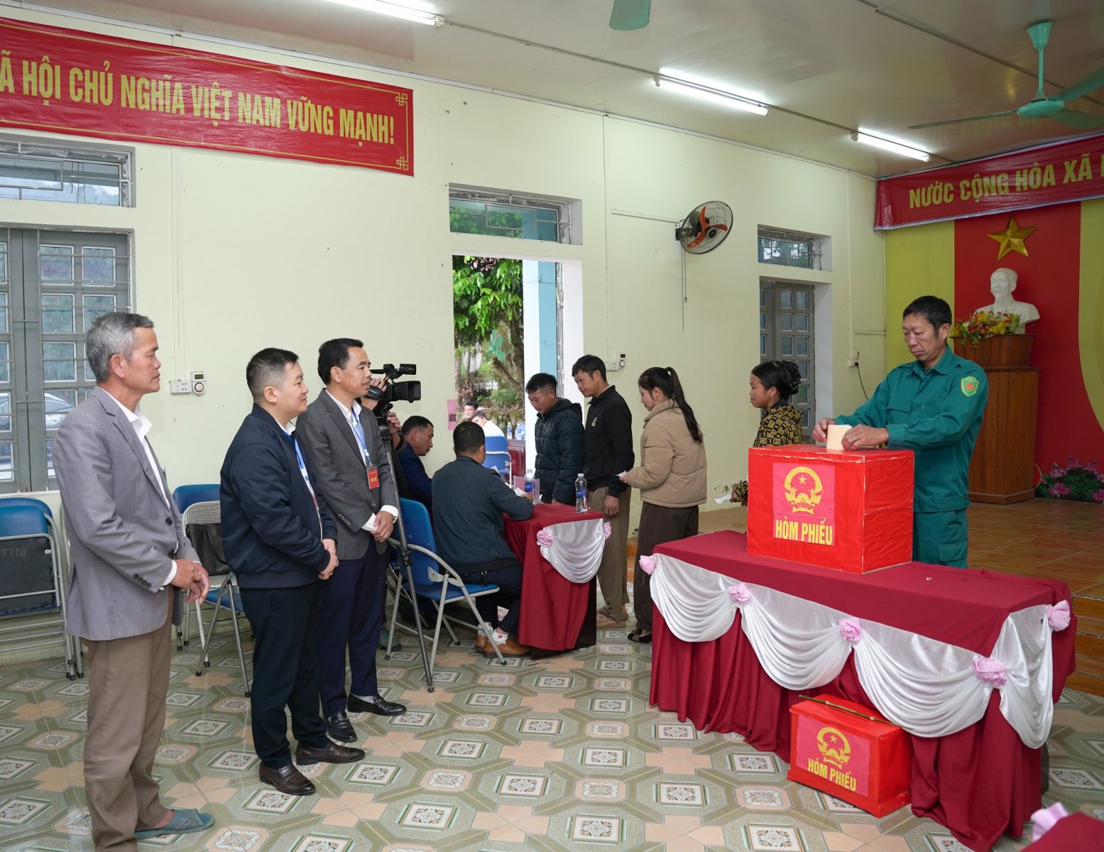 Đồng chí Nguyễn Minh Hiệu - Ủy viên BCH Đảng bộ tỉnh, Bí thư Đảng ủy; đồng chí Chu Văn Thanh, Phó Bí thư, Chủ tịch UBND xã cũng đã đi kiểm tra công tác bầu cử tại các các khu vực bỏ phiếu trên địa bàn xã; qua kiểm tra đồng chí đánh giá cao công tác chuẩn bị bầu cử tại các khu vực bỏ phiếu, đồng thời đồng chí Bí thư Đảng ủy Nguyễn Minh Hiệu mong muốn cử tri dành thời gian nghiên cứu kỹ thông tin về từng người ứng cử, để lựa chọn người đại biểu tiêu biểu nhất đại diện cho nhân dân truyền đạt tâm tư nguyện vọng tới các cấp chính quyền thông qua việc bỏ lá phiếu bầu đại biểu Quốc hội Khóa XVI và HĐND các cấp nhiệm kỳ 2026-2031.