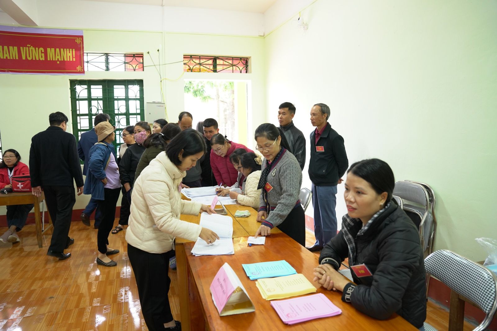 Ảnh: Cử tri thôn 21 tham gia bỏ phiếu bầu cử