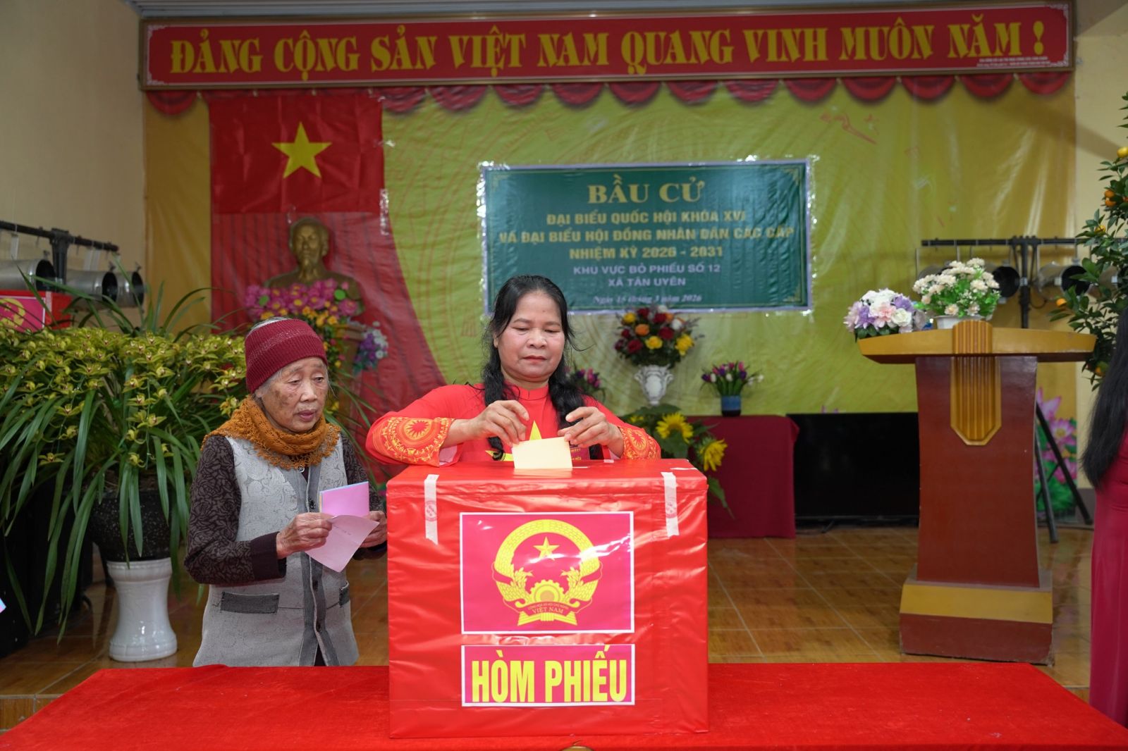 Theo ghi nhận tại khu vực bầu cử số 12, thôn 21. Ngay từ sáng sớm rất đông cử tri đã có mặt tại khu vực nhà văn hóa thôn để tham gia bỏ phiếu. Bà Nguyễn Thị Phúc, Trưởng thôn 21 cho biết, thôn 21 có 515 cử tri, để chuẩn bị tốt cho công tác bầu cử đại biểu Quốc hội khóa XVI và HĐND các cấp nhiệm kỳ 2026-2031, tổ bầu cử số 12 đã làm tốt công tác tuyên truyền, trang trí khánh tiết tại khu vực bỏ phiếu…, đến thời điểm này đã có rất đông cử tri đã có mặt để tham gia quyền và nghĩa vụ của công dân, sáng suốt lựa chọn những người có đủ đức, đủ tài.