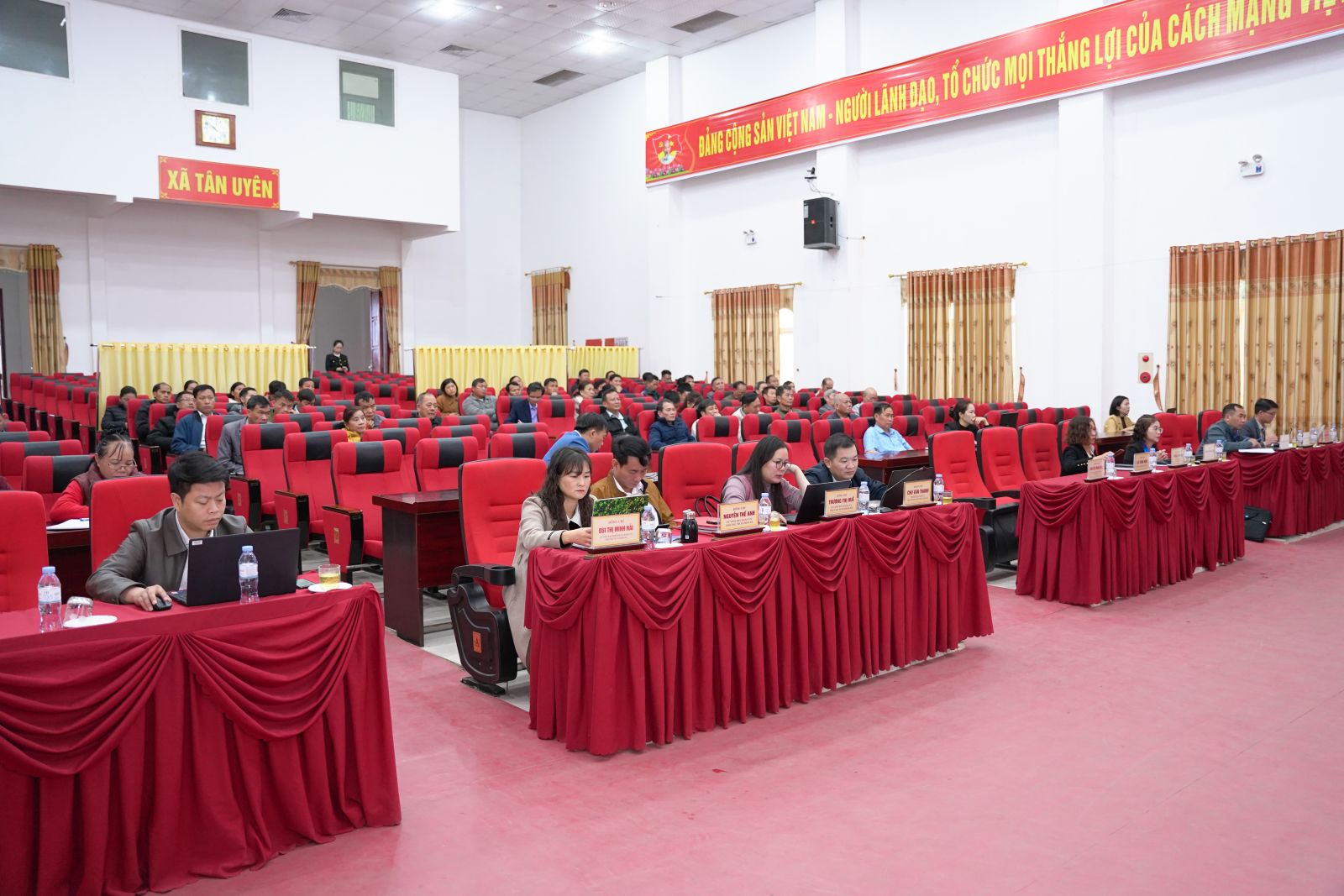 Ảnh: Đại biểu xã tham dự tại điểm cầu xã Tân Uyên