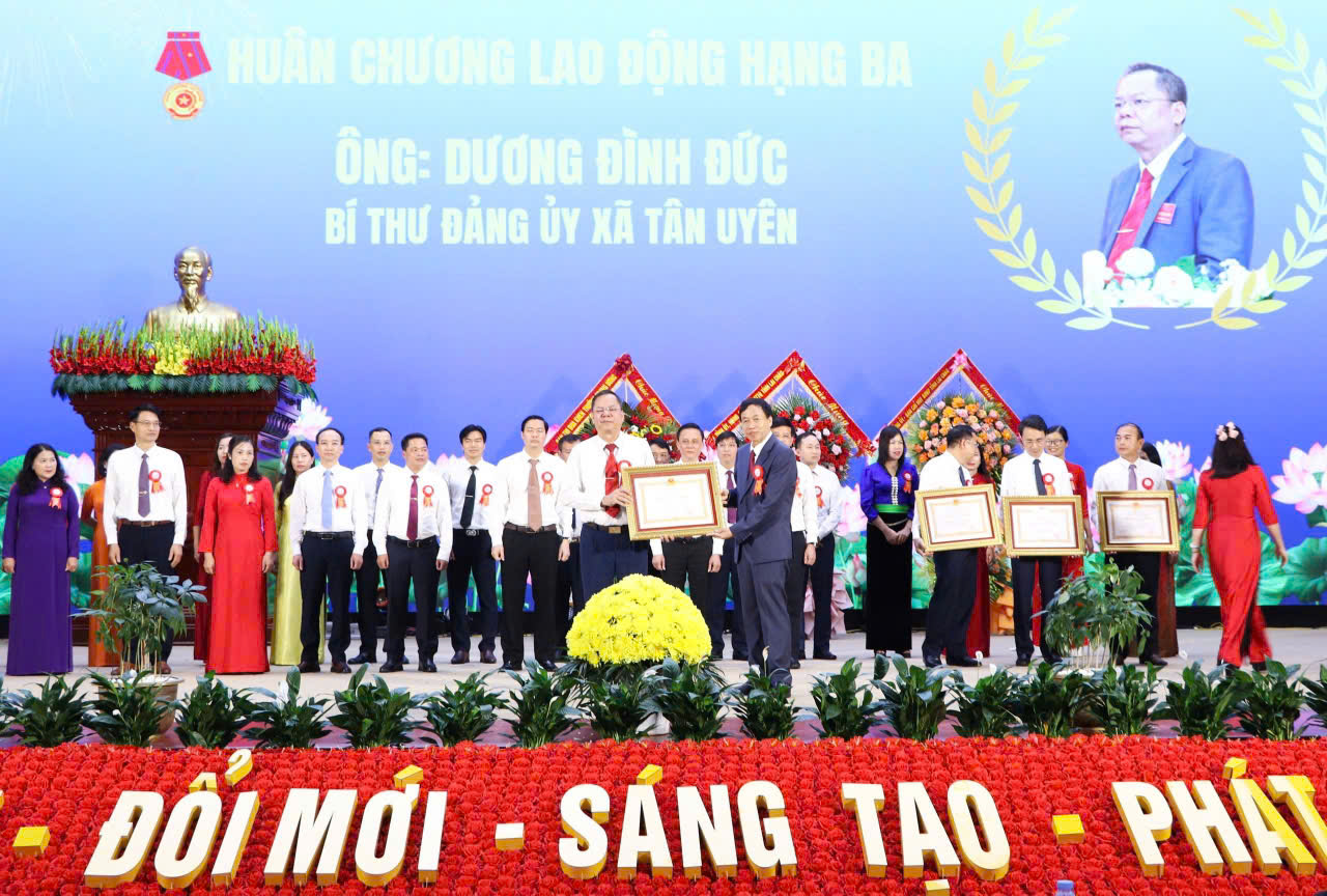 Với những đóng góp xuất sắc trong 5 năm qua, đồng chí Tiến sỹ Dương Dình Đức - Ủy viên Ban Chấp hành Đảng bộ tỉnh, Bí thư Đảng ủy, Chủ tịch HĐND xã Tân Uyên và đồng chí Bùi Thị Lan - Chánh Văn phòng Đảng ủy xã Tân Uyên là 2 trong 31 cá nhân tiêu biểu của tỉnh Lai Châu vinh dự được Chủ tịch nước Cộng hòa xã hội chủ nghĩa Việt Nam tặng Huân chương lao động hạng ba, đây là phần thưởng cao qúy nhằm ghi nhận những công lao, đóng góp to lớn của đồng chí Dương Đình Đức và đồng chí Bùi Thị Lan trong phong trào thi đua yêu nước giai đoạn 2020-2025. Đây không chỉ là vinh dự của các đồng chí mà còn là vinh dự của Đảng bộ, chính quyền và Nhân dân xã Tân Uyên./.