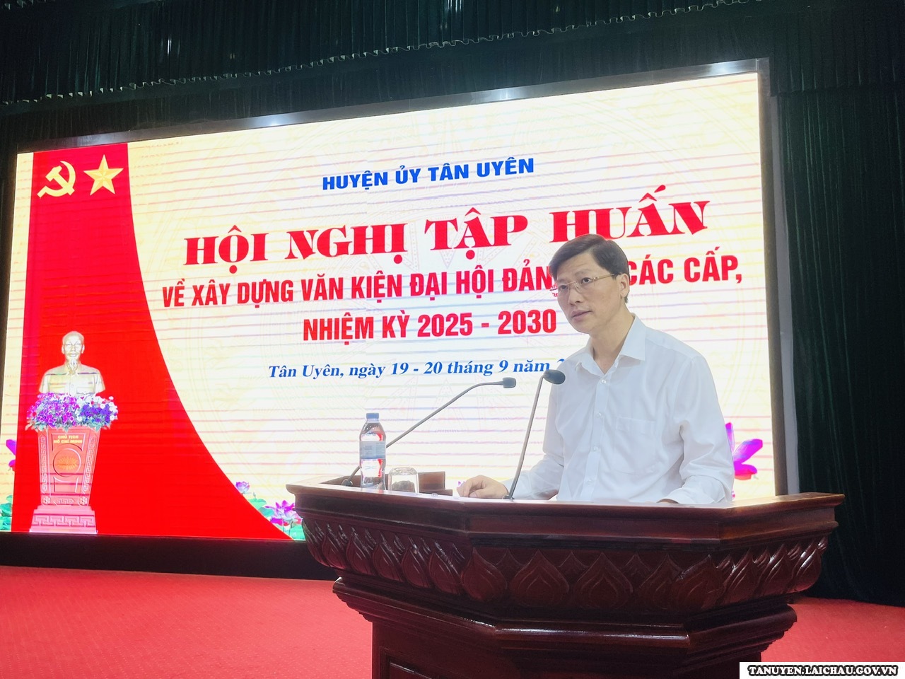 Ngày 19/9/2024, Ban Thường vụ Huyện ủy Tân Uyên tổ chức lớp tập huấn về xây dựng các văn kiện chuẩn bị đại hội đảng bộ các cấp, nhiệm kỳ 2025 – 2030. Đồng chí Bùi Huy Phương – Tỉnh ủy viên, Bí thư Huyện ủy, Chủ tịch HĐND huyện dự và phát biểu khai mạc.