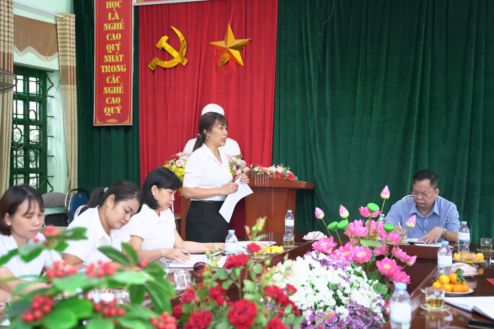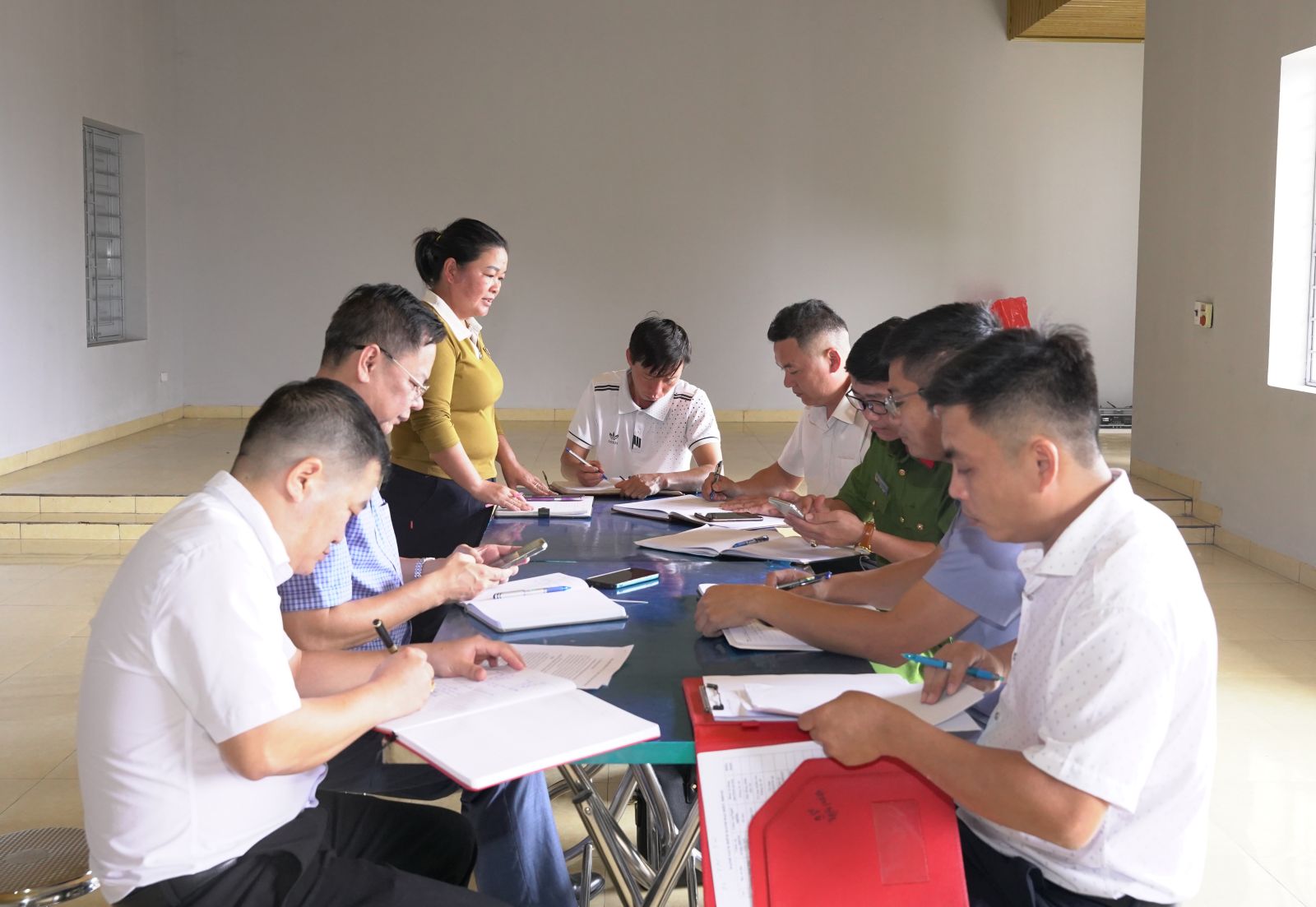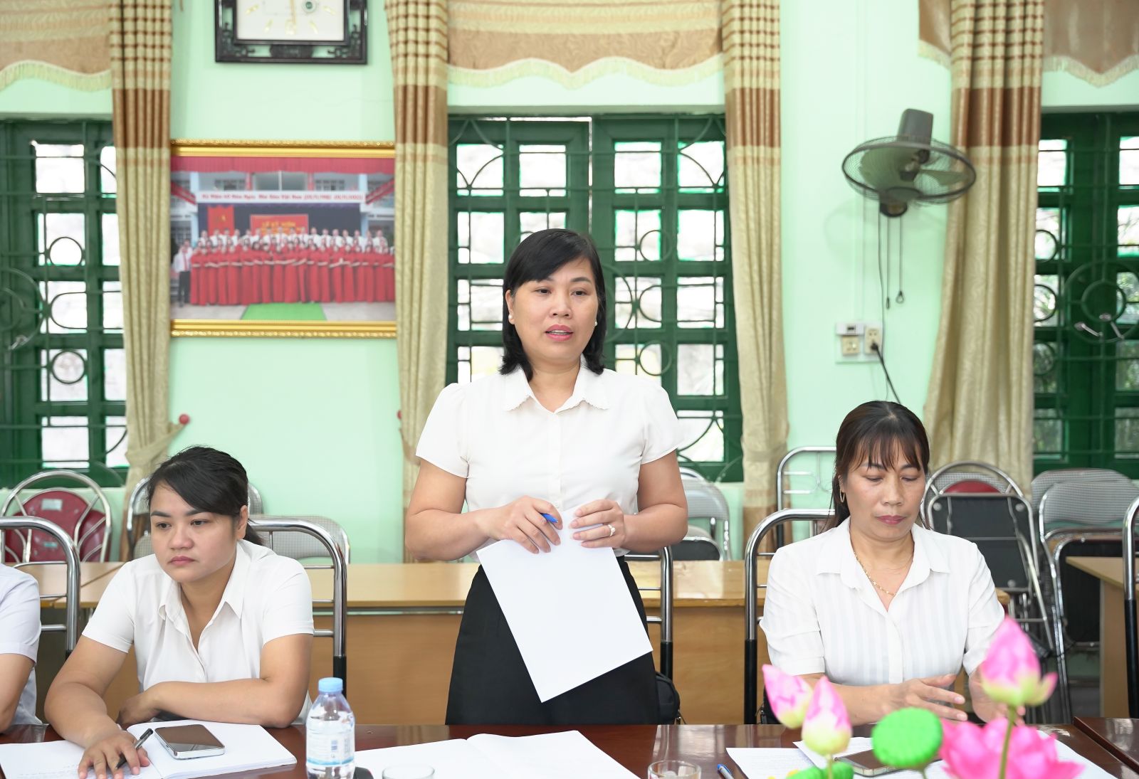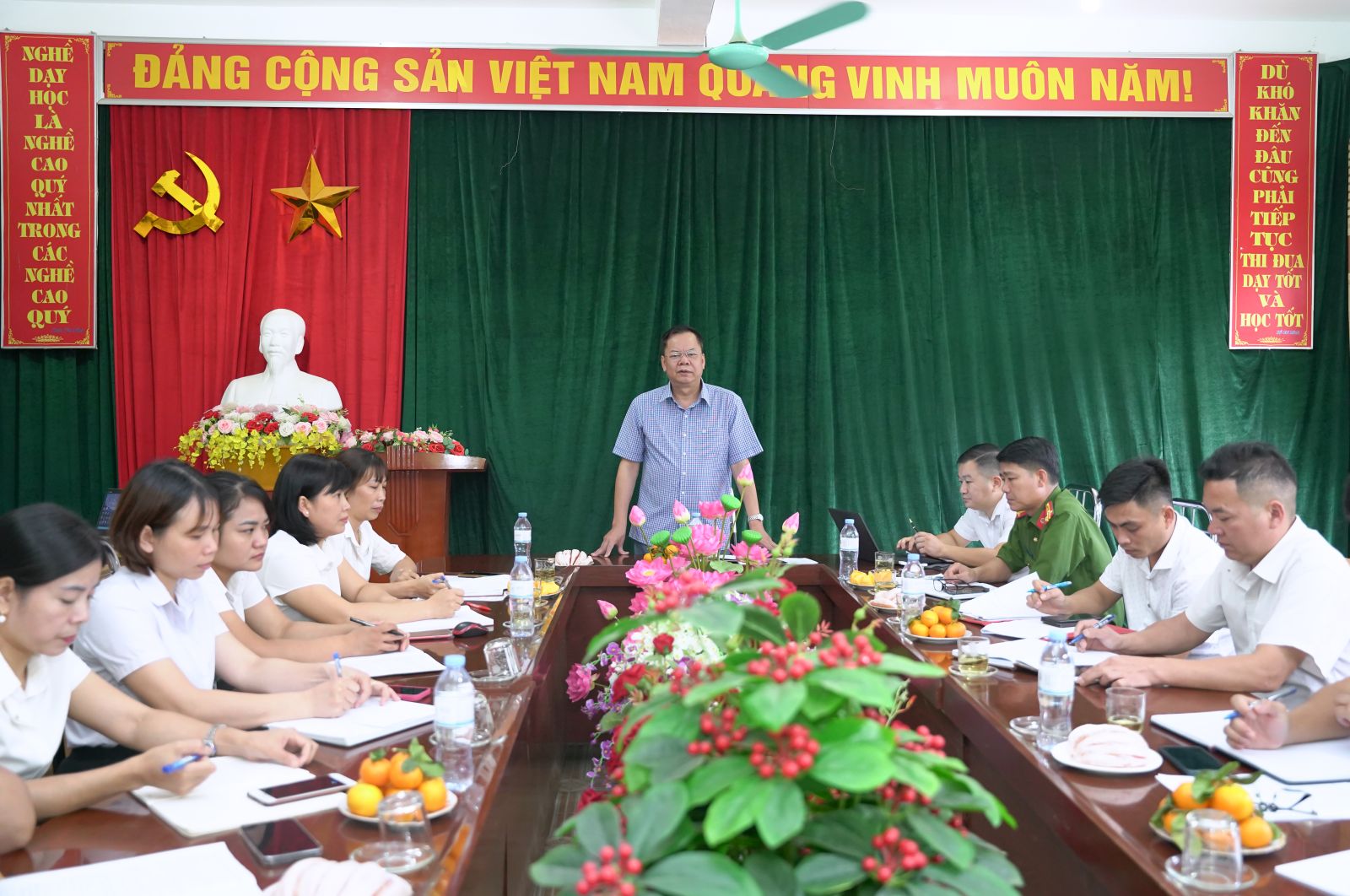 Ảnh: Đồng chí Chu Văn Thanh – Phó Bí thư, Chủ tịch UBND xã phát biểu tại buổi làm việc với trường Tiểu học Trung Đồng