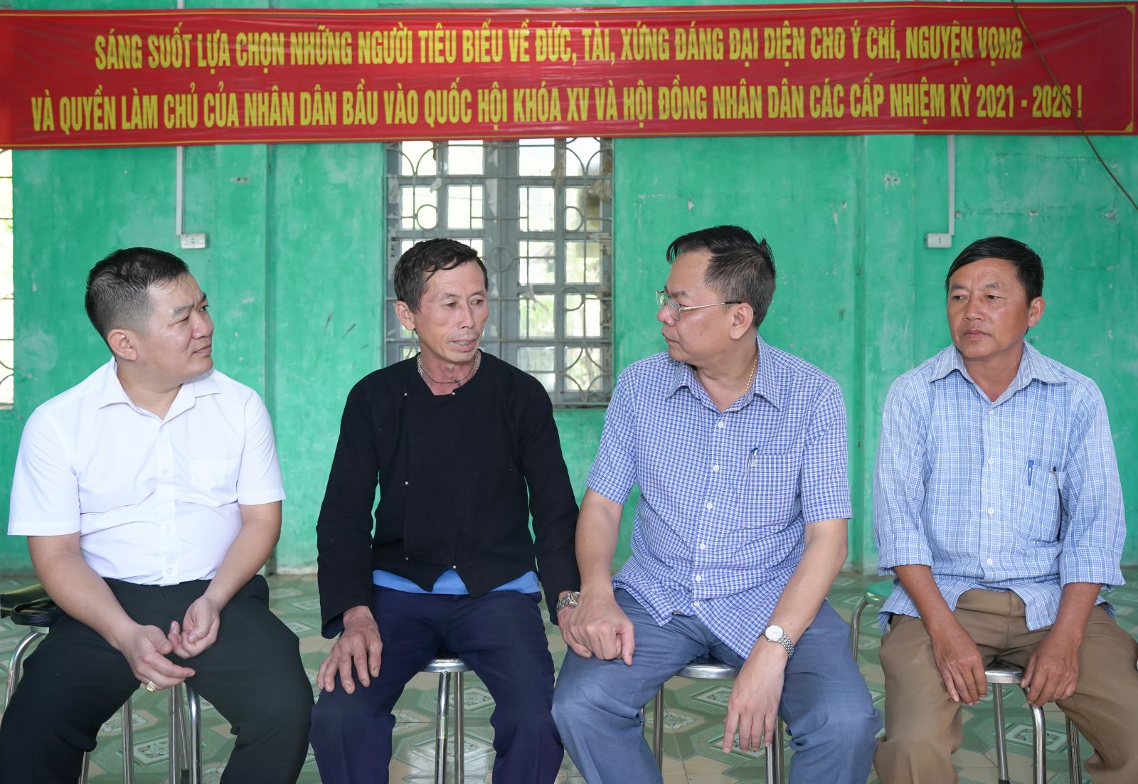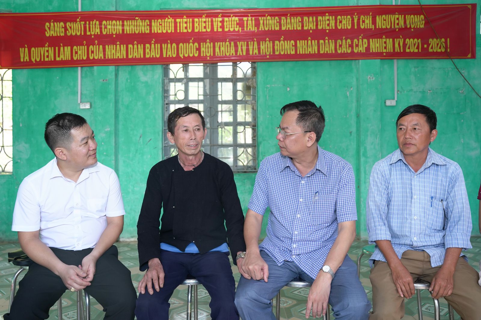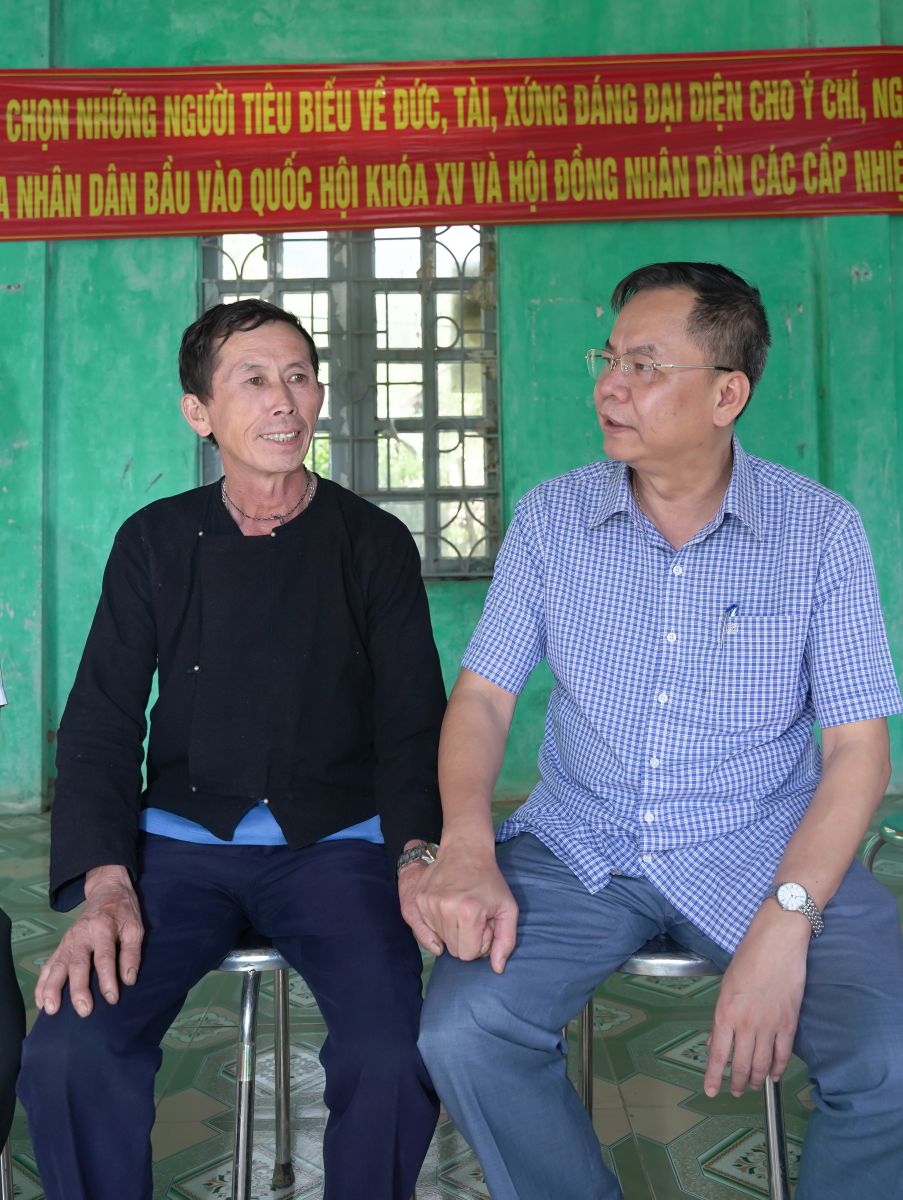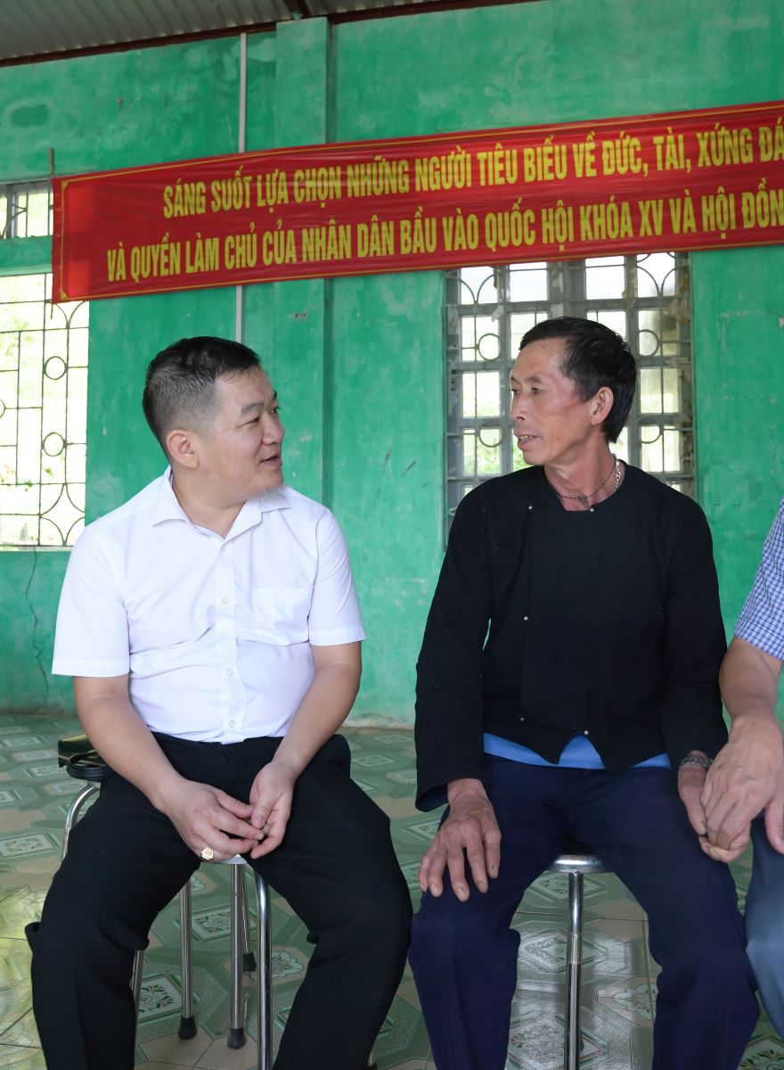 Ảnh: Bí thư Đảng ủy Dương Đình Đức và đồng chí Chu Văn Thanh – Phó Bí thư, chủ tịch UBND xã thăm động viên Nhân dân thôn Hua Cưởm 2.