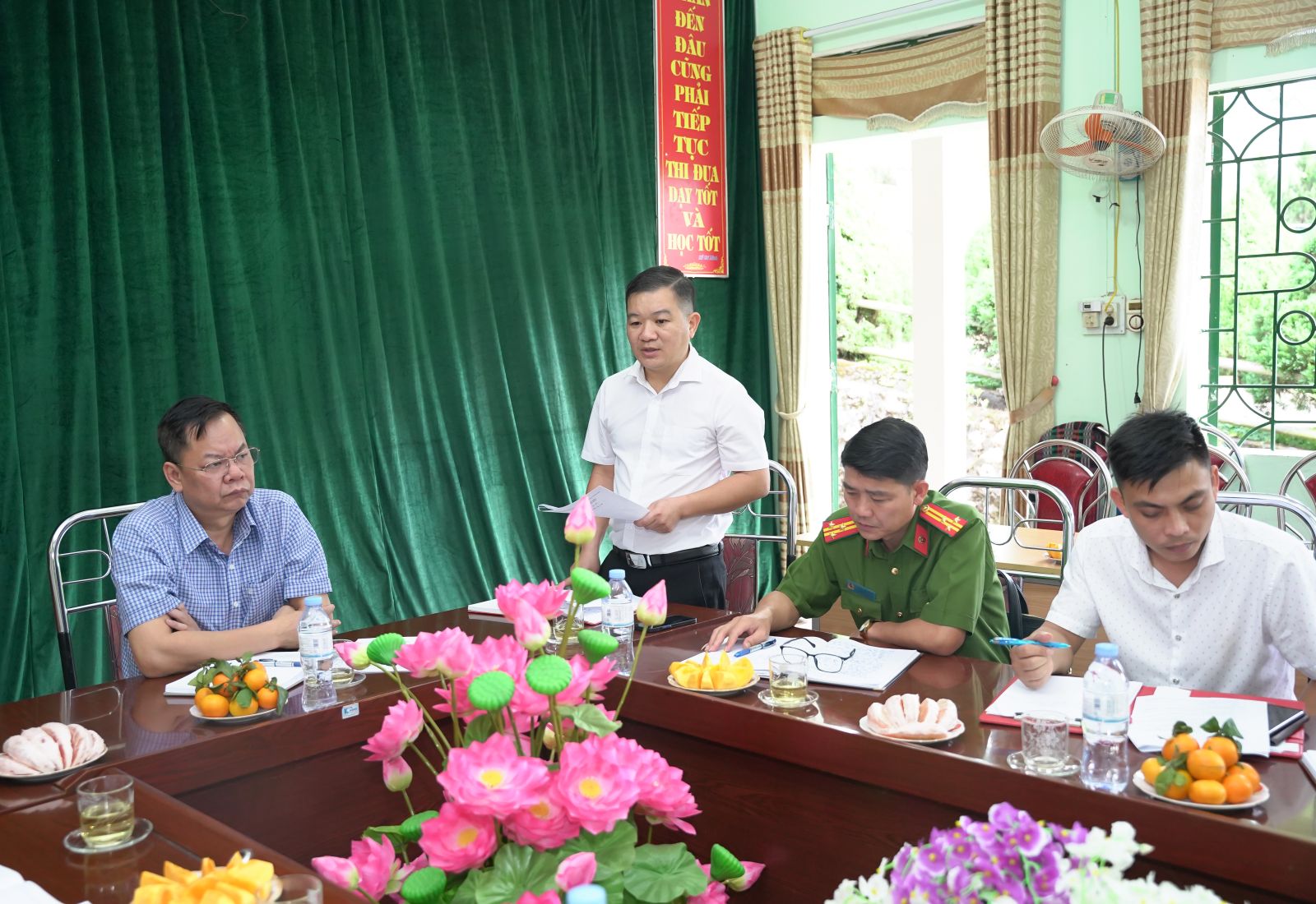 Ngay sau khi đi thăm và kiểm tra, đồng chí Bí thư Đảng ủy Dương Đình Đức ghi nhận, biểu dương những kết quả mà các chi bộ và Nhân dân thôn Hua Cưởm 1,2 và trường Tiểu học Trung Đồng đã đạt được trong thời gian qua, đặc biệt là tinh thần đoàn kết, trách nhiệm trong lãnh đạo, chỉ đạo thực hiện nhiệm vụ ở địa phương và nhà trường. Đồng chí đã thông báo những kết quả mà cấp ủy, chính quyền địa phương sau khi đi vào hoạt động từ ngày 01/7/2025, với sự nỗ lực của cấp ủy, chính quyền địa phương và Nhân dân trên địa bàn xã Tân Uyên đã đạt được những kết quả quan trọng trong phát triển kinh tế - văn hóa, xã hội, quốc phòng an ninh, đặc biệt trong công tác cảnh cách hành chính…