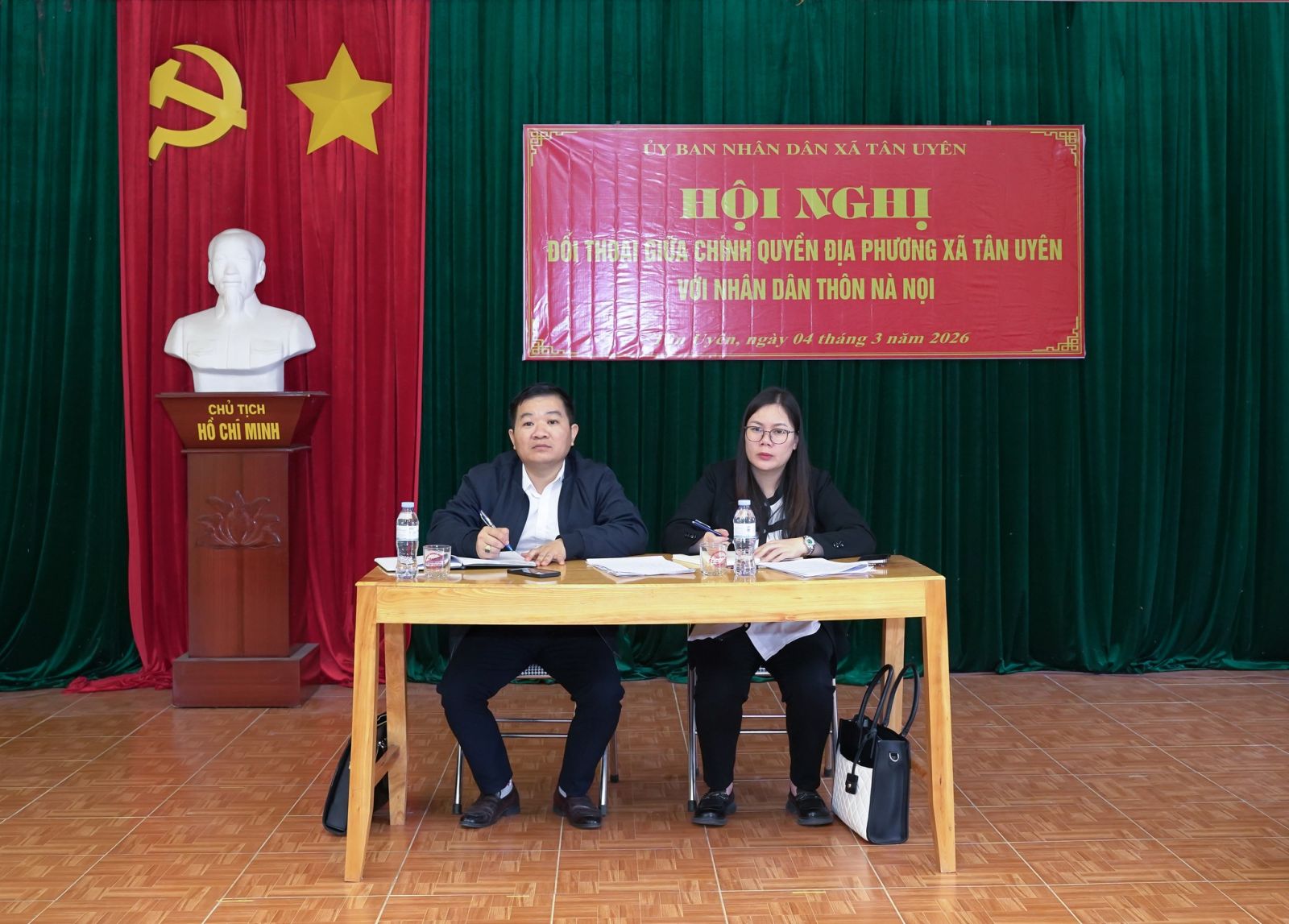 Ảnh: Đồng chí Chu Văn Thanh – Phó Bí thư, Chủ tịch UBND xã; đồng chí Trương Thị Huế - Ủy viên Ban Thường vụ Đảng ủy, Phó Chủ tịch HĐND xã dự chủ trì buổi đối thoại