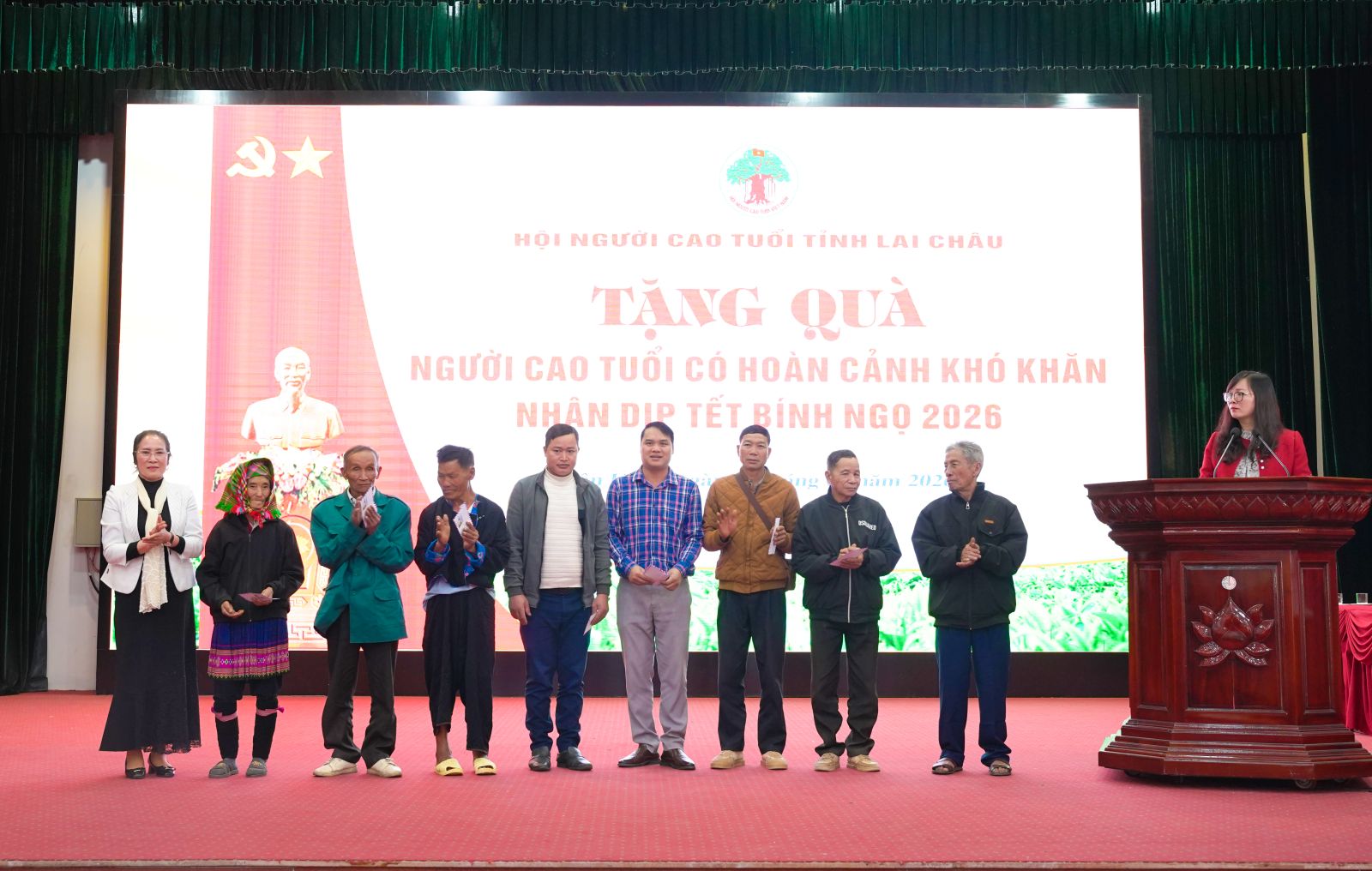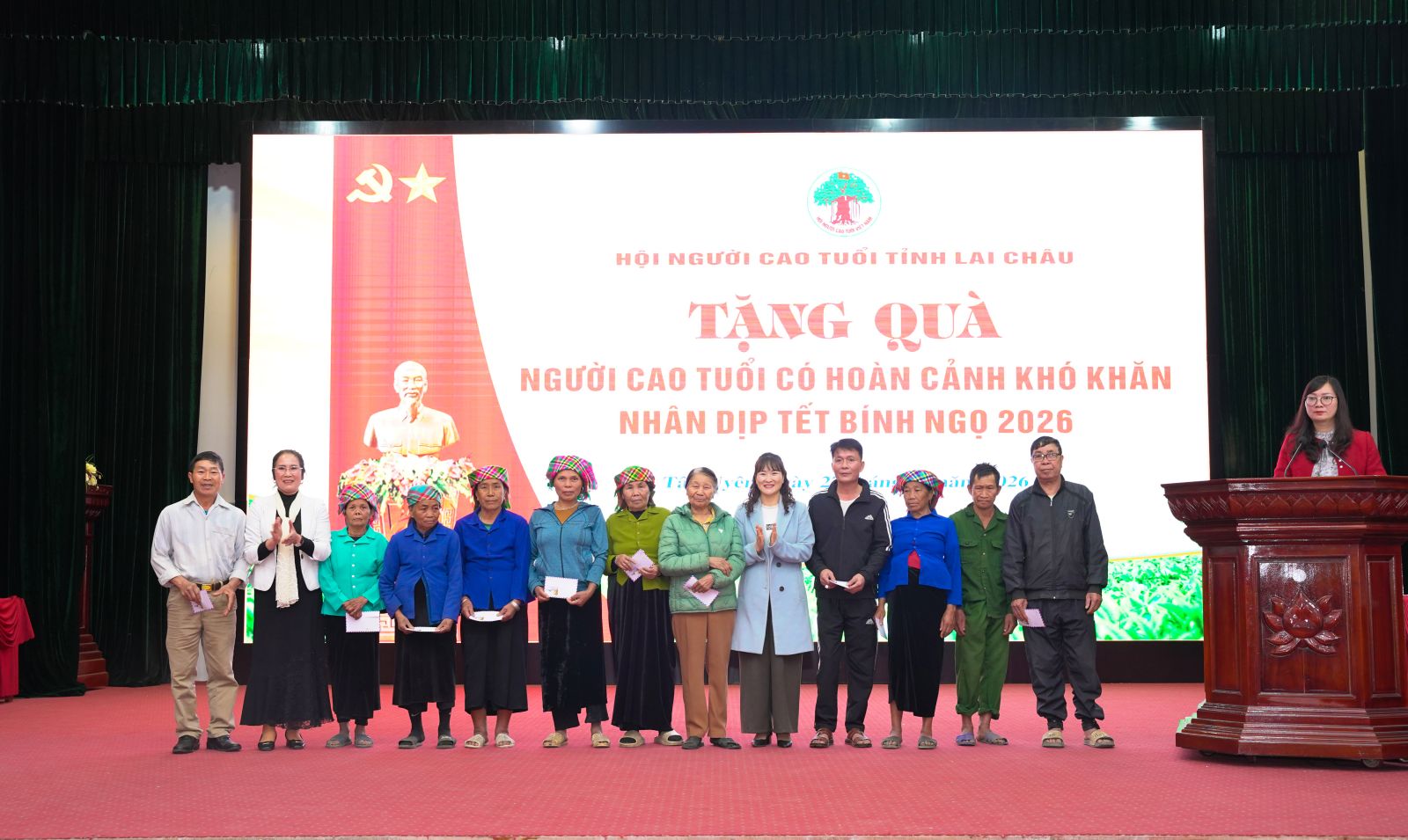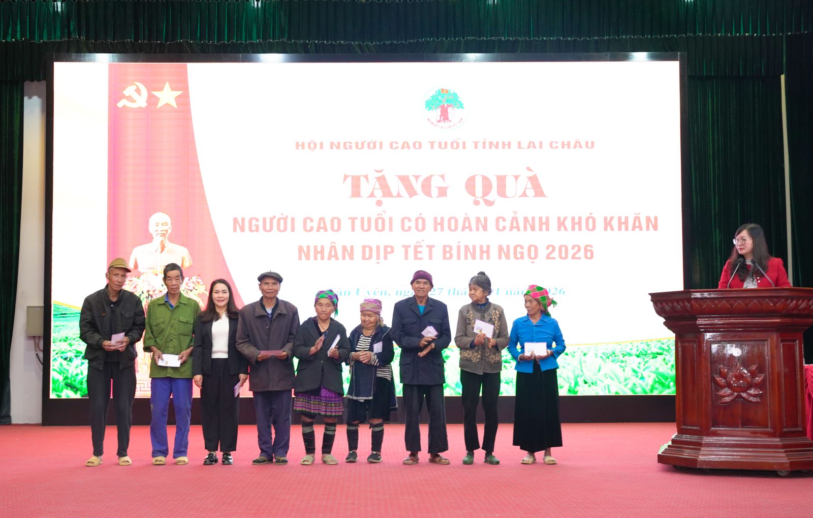 Nhân dịp Tết Nguyên đán Bính Ngọ, chiều ngày 27/01, tại xã Tân Uyên, Hội Người cao tuổi tỉnh phối hợp với xã Tân Uyên tổ chức chương trình tặng quà Tết cho Người cao tuổi có hoàn cảnh khó khăn trên địa bàn 4 xã Tân Uyên, Pắc Ta, Nậm Sỏ và Mường Khoa. Tham dự có đồng đại diện lãnh đạo Hội Người cao tuổi tỉnh; đồng chí Bùi Thị Minh Hải - Ủy viên Ban Thường vụ, Phó Chủ tịch UBND xã Tân Uyên; đồng chí Bùi Thị Hợi, Phó Chủ tịch UBMTTQVN xã, Chủ tịch Hội Phụ nữ xã; đại diện lãnh đạo Phòng Văn hóa – xã hội xã Nậm Sỏ và Người cao tuổi các xã.