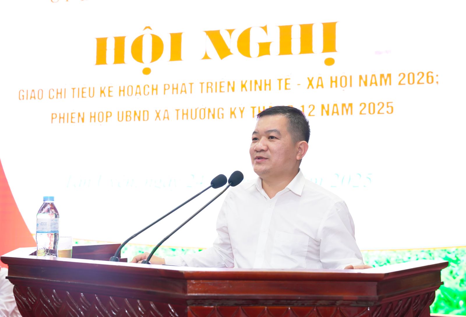 Phát biểu kết luận Hội nghị, đồng chí Chu Văn Thanh, Phó Bí thư, Chủ tịch UBND xã nhấn mạnh, bước vào năm 2026, là năm diễn ra Đại hội lần thứ XIV của Đảng, tổ chức bầu cử đại biểu Quốc hội, Hội đồng nhân dân các cấp, cũng là năm đầu triển khai Nghị quyết Đại hội Đảng bộ tỉnh, Nghị quyết Đại hội Đảng bộ xã; kế hoạch phát triển kinh tế - xã hội 5 năm 2026-2031. Chủ tịch UBND xã đề nghị các phòng ban chuyên môn tiếp tục quán triệt, triển khai thực hiện kịp thời, hiệu quả các chương trình, đề án, kế hoạch thực hiện Nghị quyết Đại hội Đảng bộ xã, Nghị quyết HĐND xã khóa I về Kế hoạch phát triển kinh tế - xã hội 5 năm giai đoạn 2026-2031; tổ chức thực hiện đồng bộ, quyết liệt các cơ chế, chính sách của tỉnh đã ban hành, cụ thể, đề cao trách nhiệm người đứng đầu, nói đi đôi với làm, làm việc gì dứt việc đó.Với khí thế mới, động lực mới, UBND xã sẽ cùng với các cấp, các ngành tiếp tục đoàn kết, với quyết tâm và sự năng động, sáng tạo hơn nữa để hoàn thành thắng lợi mục tiêu, nhiệm vụ kế hoạch đã đề ra.