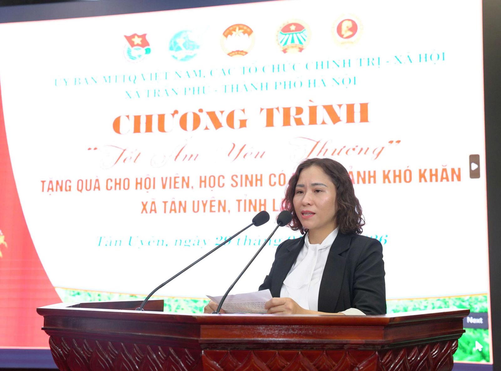 Thay mặt Ban Thường trực Ủy ban Mặt trận Tổ quốc xã Tân Uyên, đồng chí Mùa Thị Nu, Ủy viên BTV Đảng ủy, Chủ tịch UBMTTQVN xã cảm ơn sự quan tâm, chia sẻ của Ủy ban MTTQVN xã; các tổ chức chính trị - xã hội xã Trần Phú, thành phố Hà Nội. Đồng thời khẳng định chương trình “Tết ấm tình yêu thương” là hoạt động ý nghĩa, góp phần chăm lo đời sống cho các hộ nghèo, hội viên và học sinh có hoàn cảnh khó khăn, giúp mọi người vui xuân, đón Tết đầm ấm, đủ đầy.