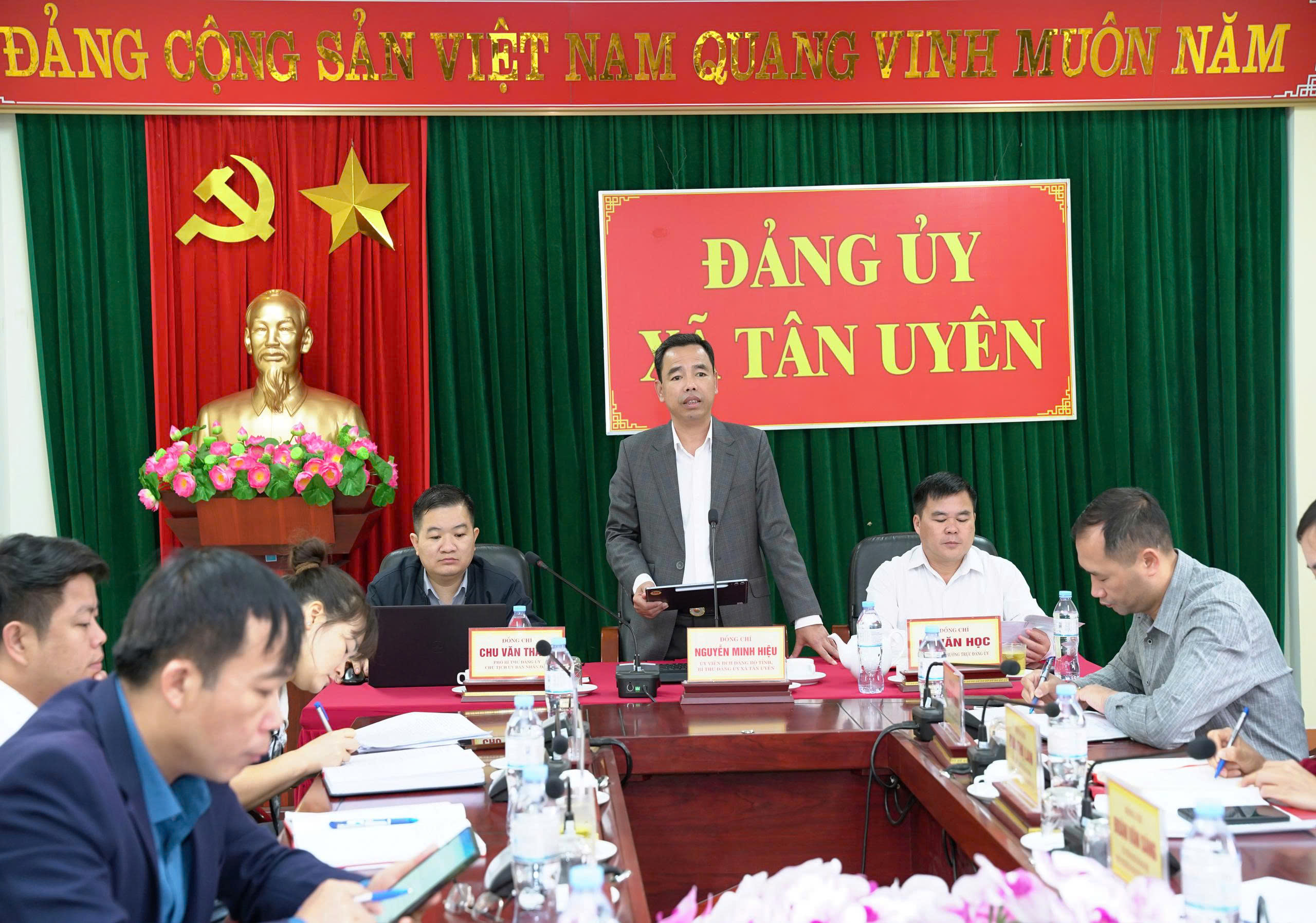 Ảnh: Đồng chí Nguyễn Minh Hiệu - Ủy viên Ban Chấp hành Đảng bộ tỉnh, Bí thư Đảng ủy xã Tân Uyên phát biểu kết luận buổi làm việc
