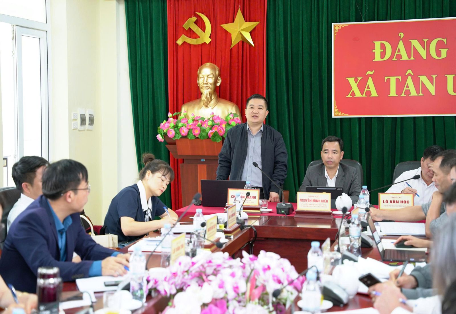 Ảnh: Đồng chí Chu Văn Thanh – Phó Bí thư, Chủ tịch UBND xã, đồng chí Bùi Thị Minh Hải - Ủy viên Ban Thường vụ Đảng ủy, Phó Chủ tịch UBND xã,