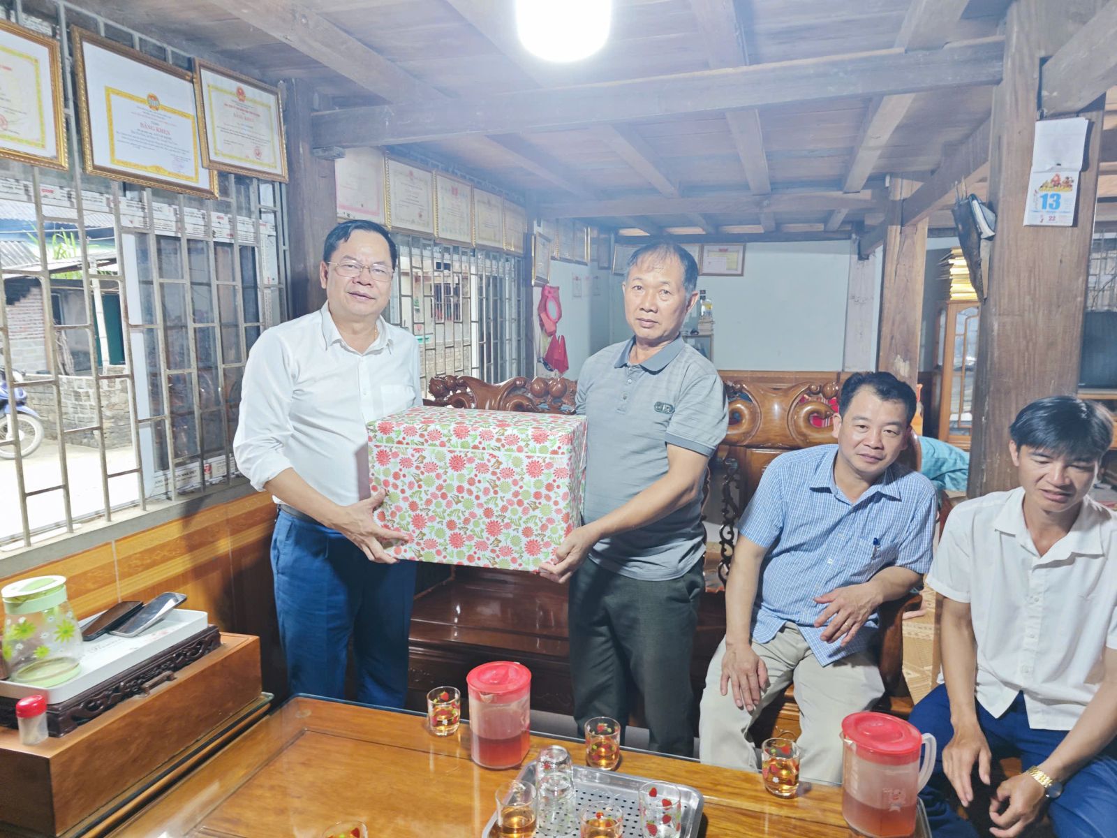 Ảnh: Đồng chí Dương Đình Đức đã tặng quà cho thôn Nà Phát