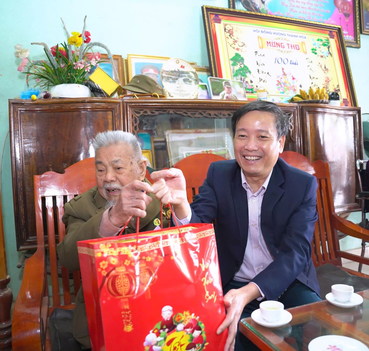 Tiếp đó, đoàn đã đến thăm gia đình đảng viên lão thành Vũ Văn Tri (tên gọi khác là Vũ Văn Chính) tại Thôn 21 - đảng viên 70 năm tuổi Đảng, năm nay tròn 100 tuổi; thăm gia đình thương binh Hoàng Công Ngự (thương binh 61%) tại Thôn 26. Tại các gia đình đến thăm, đồng chí Lê Đức Dục đã ân cần thăm hỏi sức khỏe, đời sống sinh hoạt của các đảng viên cao tuổi Đảng, người có công; bày tỏ sự tri ân sâu sắc đối với những đóng góp, hy sinh to lớn của các thế hệ đi trước với sự nghiệp cách mạng của Đảng và dân tộc. Đồng chí mong muốn các gia đình tiếp tục phát huy truyền thống cách mạng, giáo dục con cháu chấp hành tốt chủ trương của Đảng, chính sách, pháp luật của Nhà nước, tích cực tham gia các phong trào thi đua tại địa phương.