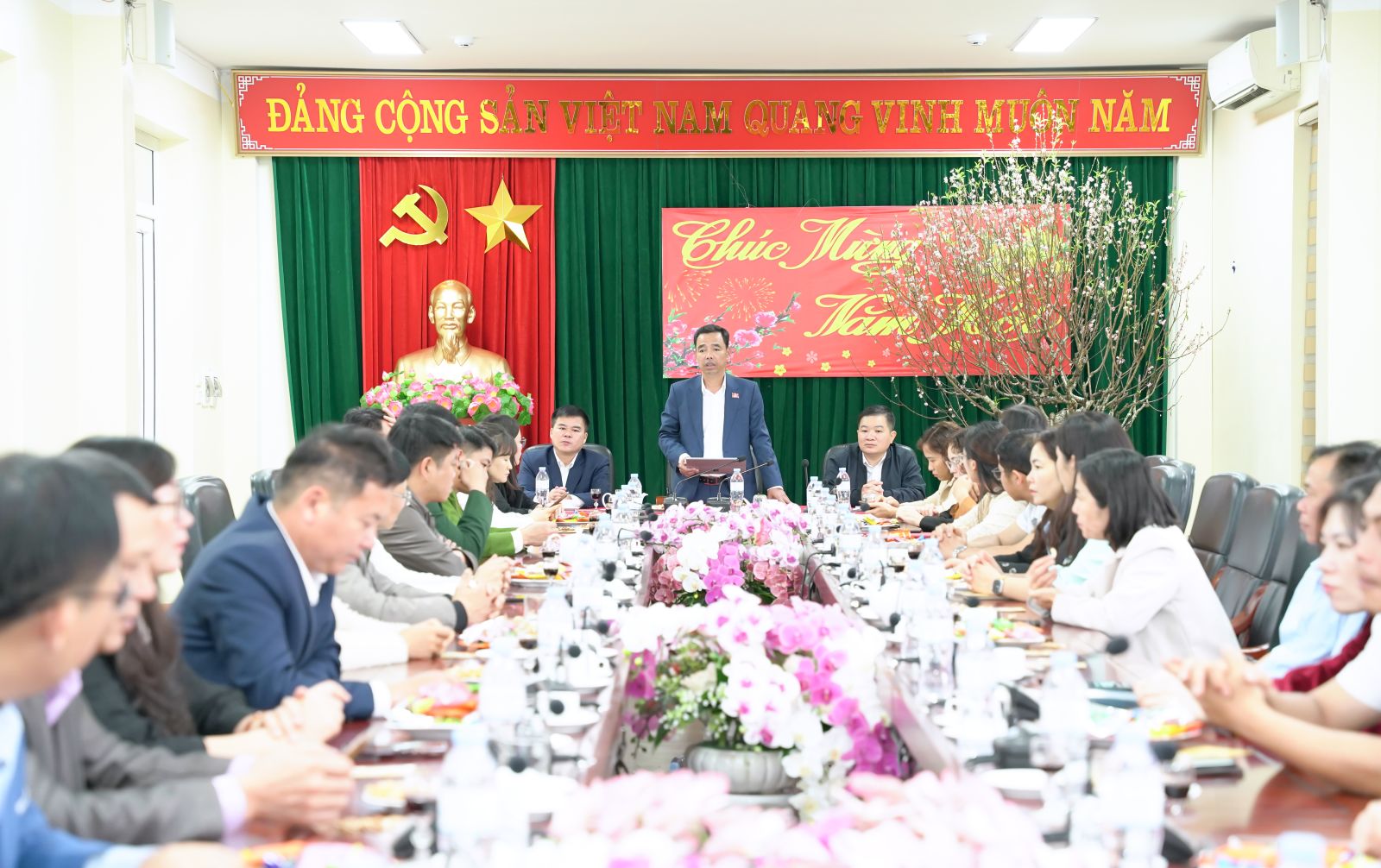 Ảnh: Đồng chí Nguyễn Minh Hiệu, Ủy viên Ban Chấp hành Đảng bộ tỉnh, Bí thư Đảng ủy phát biểu tại buổi gặp mặt