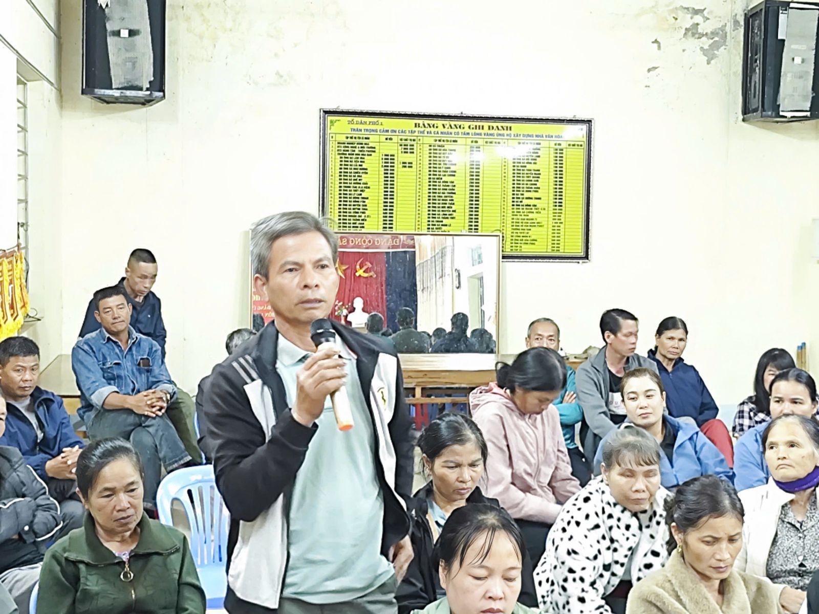 Trong không khí dân chủ, cởi mở, Nhân dân thôn 1 đã thẳng thắn trao đổi, nêu nhiều ý kiến liên quan đến các lĩnh vực như làm đường giao thông nông thôn, hỗ trợ sản xuất, các ý kiến về cấp đổi quyền sử dựng đất. Các ý kiến, kiến nghị của bà con được đồng chí Chủ tịch UBND xã và lãnh đạo các phòng, ban chuyên môn xã trực tiếp giải đáp cho người dân thôn 1.