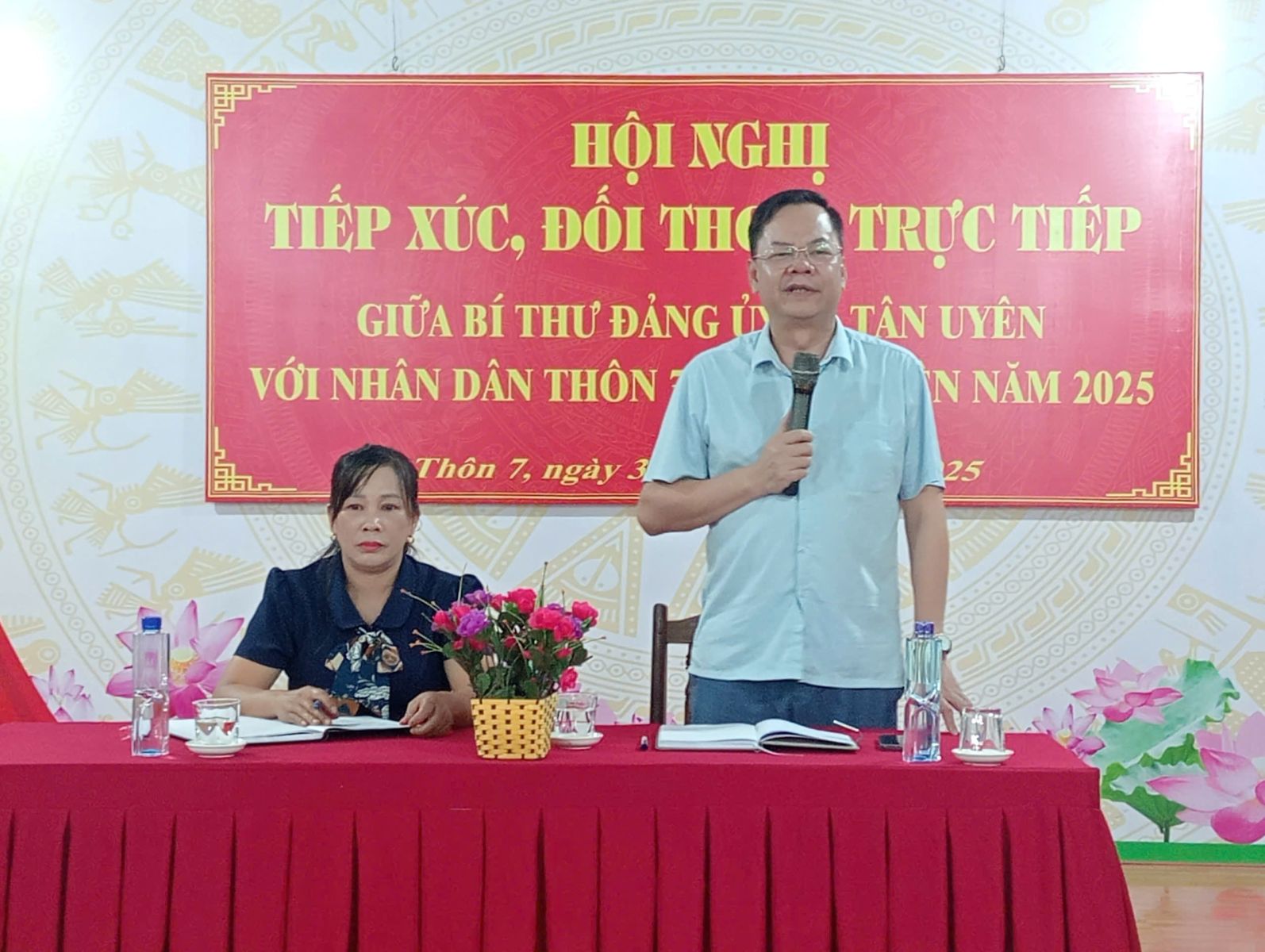Ngày 30/10, đồng chí Tiến sỹ Dương Đình Đức - Ủy viên Ban Chấp hành Đảng bộ tỉnh, Bí thư Đảng ủy, Chủ tịch HĐND xã Tân Uyên đã có buổi tiếp xúc, đối thoại trực tiếp giữa Bí thư Đảng ủy với Nhân dân thôn 7. Dự Hội nghị có đồng chí Chu Văn Thanh - Phó Bí thư Đảng ủy, Chủ tịch UBND xã; đại diện lãnh đạo một số cơ quan, ban, ngành, đoàn thể xã, cùng đông đảo cán bộ, đảng viên và Nhân dân thôn thôn 7, xã Tân Uyên.