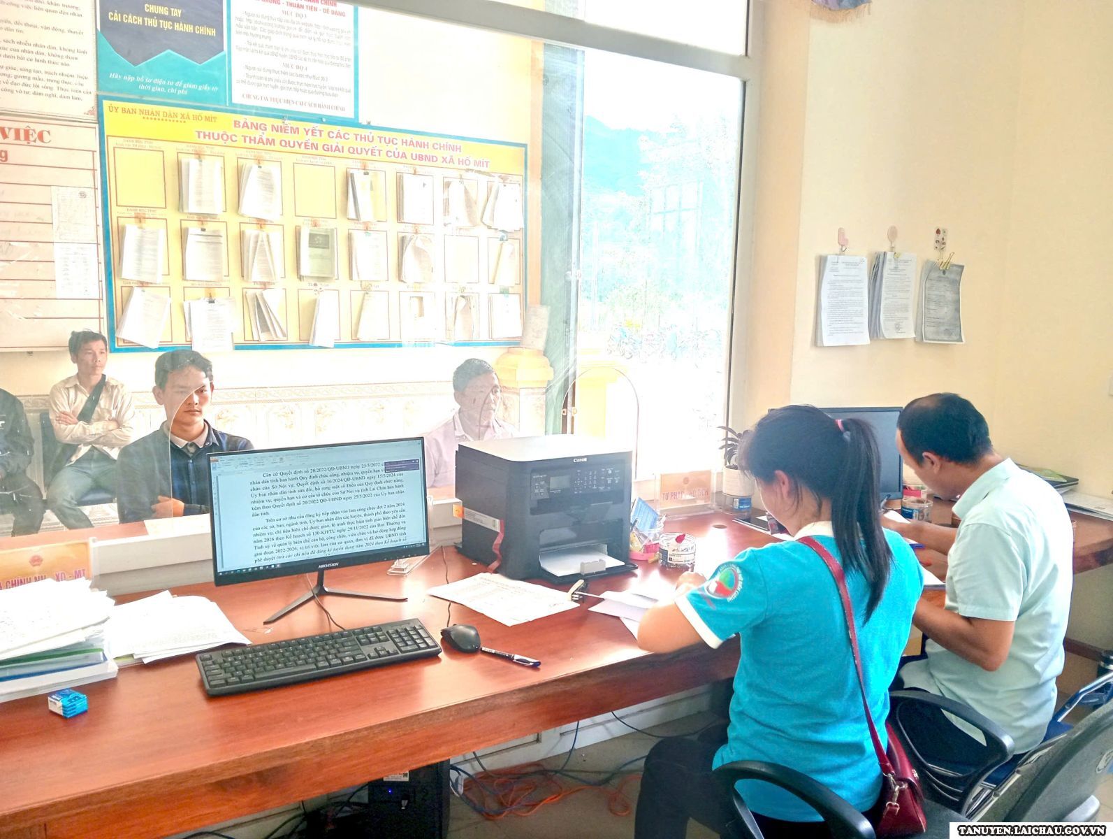Ảnh: Người dân đến giao dịch tại Bộ phận tiếp nhận và trả kết quả xã Hố Mít