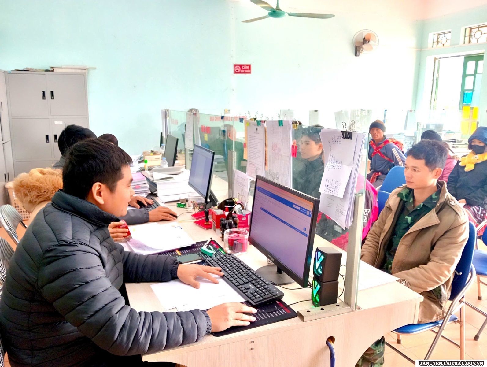 Ảnh: Người dân đến giao dịch tại Bộ phận tiếp nhận và trả kết quả xã Nậm Sỏ
