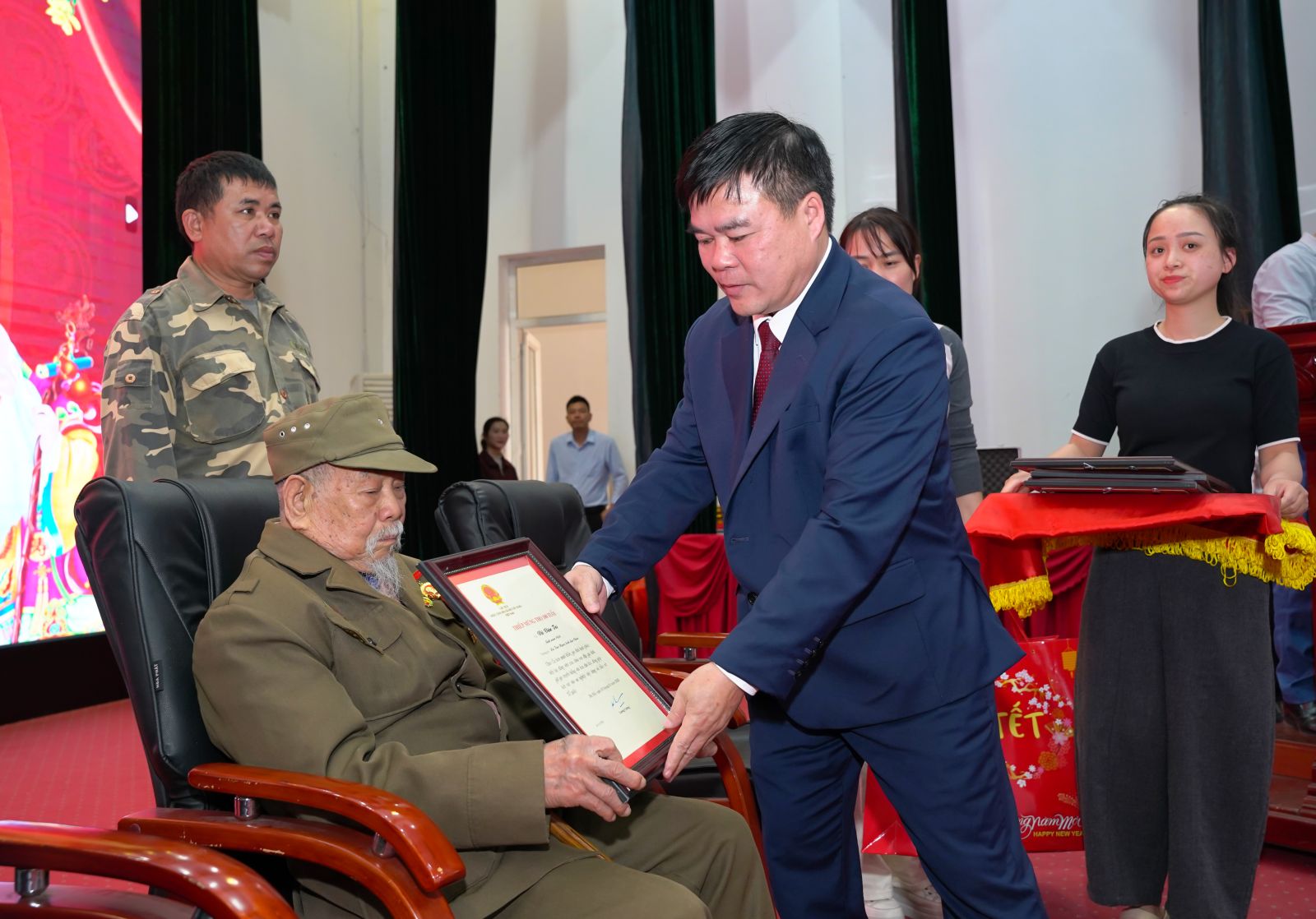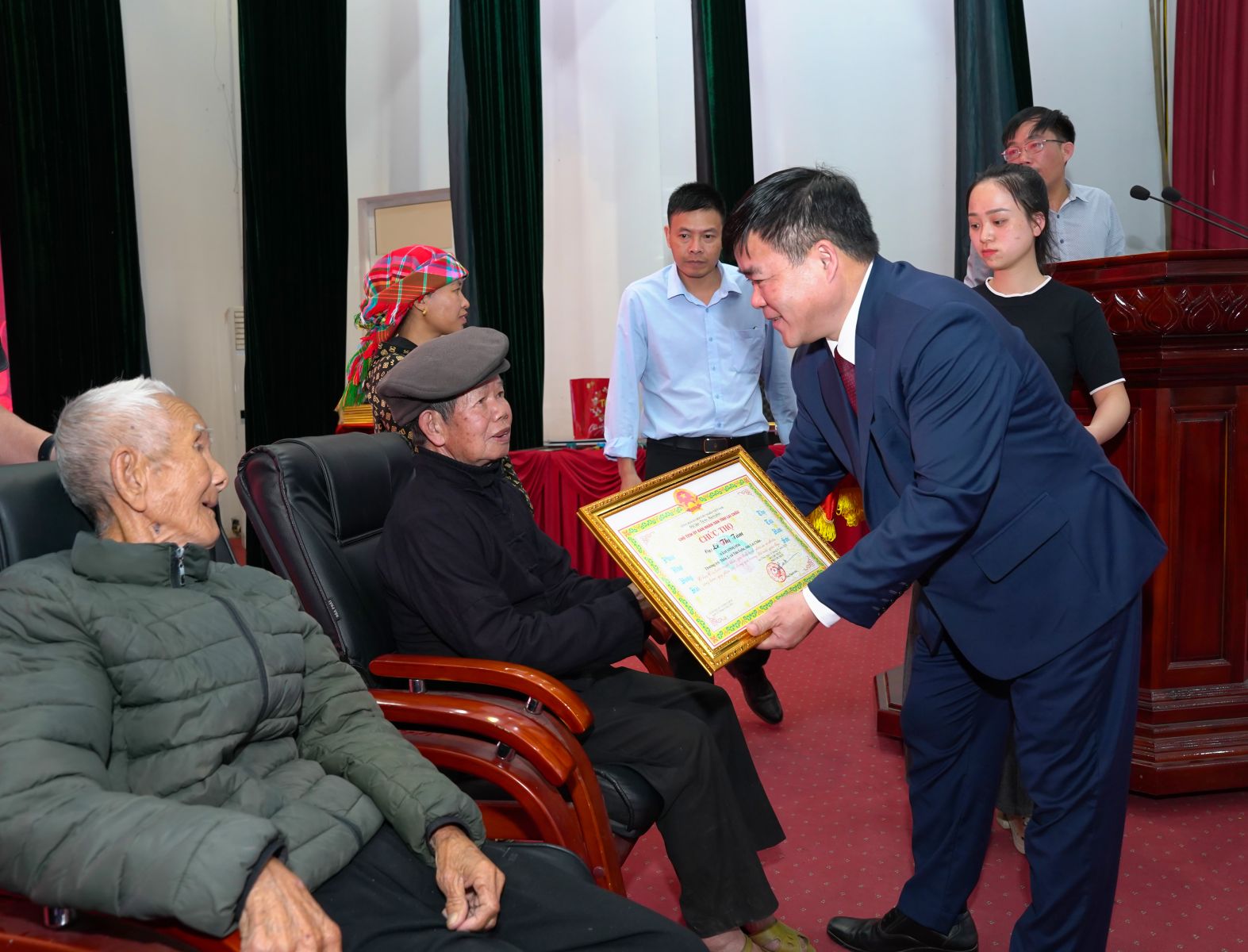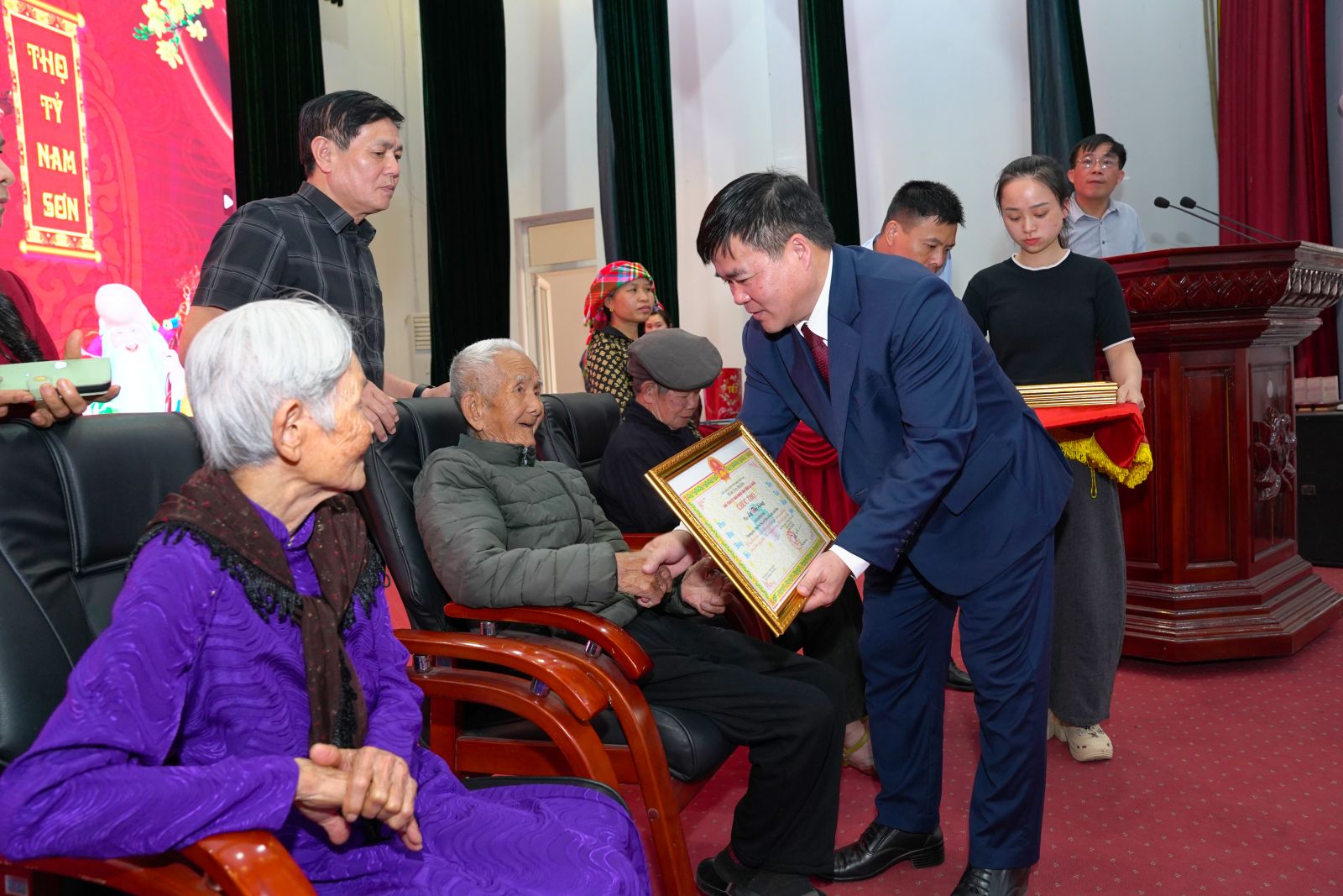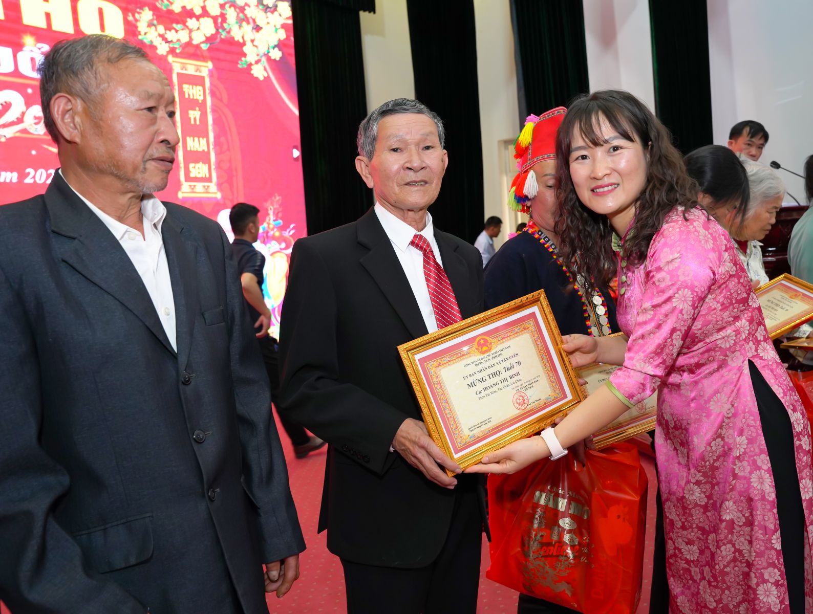 Ảnh: Thường trực Đảng ủy – HĐND – UBND xã đã trao tặng quà và trao Giấy mừng thọ cho các cụ được chúc thọ, mừng thọ, Xuân Bính Ngọ năm 2026.