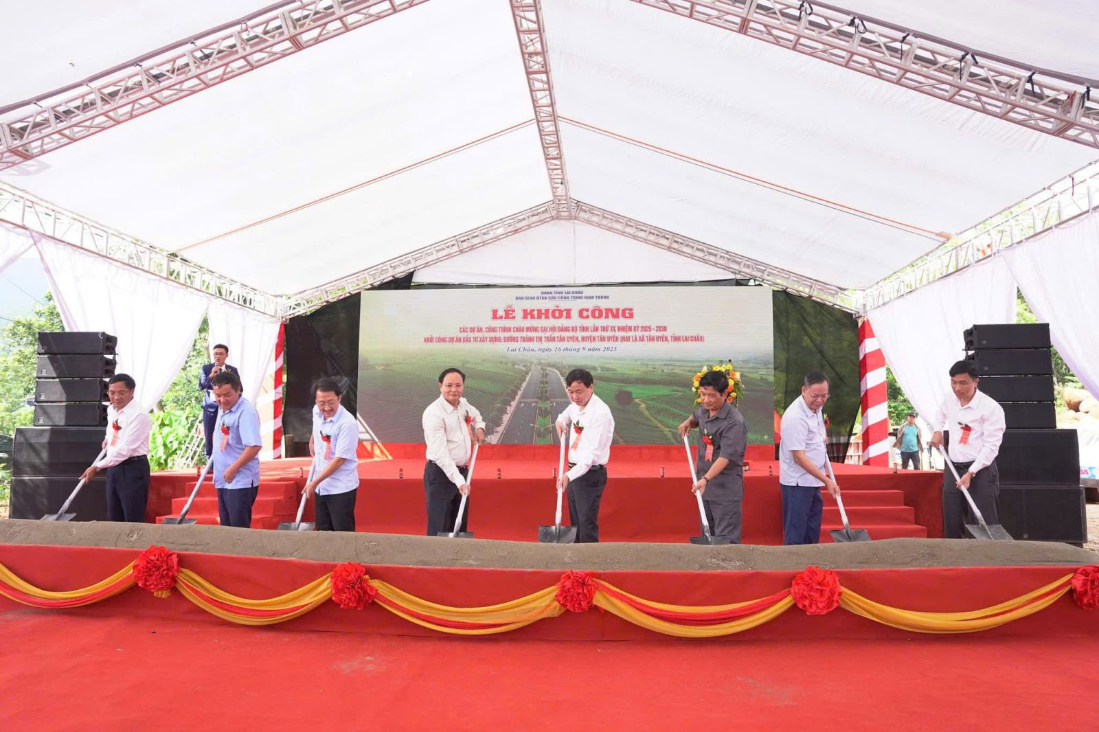 Chiều ngày 16/9, tại xã Tân Uyên, UBND tỉnh Lai Châu tổ chức Lễ khởi công dự án Đường tránh thị trấn Tân Uyên, huyện Tân Uyên (nay là xã Tân Uyên, tỉnh Lai Châu chào mừng Đại hội Đảng bộ tỉnh lần thứ XV, nhiệm kỳ 2025-2030. Dự Lễ khởi công có các đồng chí: Lê Minh Ngân – Phó Bí thư Thường trực Tỉnh ủy; Lê Văn Lương – Phó Bí thư Tỉnh ủy, Chủ tịch UBND tỉnh; các đồng chí trong Ban Thường vụ Tỉnh ủy; lãnh đạo HĐND, UBND tỉnh; đại diện lãnh đạo các sở, ban của tỉnh, về phía xã Tân Uyên có đồng chí Dương Đình Đức - Ủy viên Ban Chấp hành Đảng bộ tỉnh, Bí thư Đảng ủy, Chủ tịch HĐND xã; đồng chí Lò Văn Học - Phó Bí thư Thường trực Đảng ủy; đồng chí Chu Văn Thanh - Phó Bí thư, Chủ tịch UBND xã, lãnh đạo Thường trực HĐND - UBND - UBMTTQVN xã, các cơ quan, ban, ngành, đoàn thể chính trị - xã hội và nhân dân xã Tân Uyên.