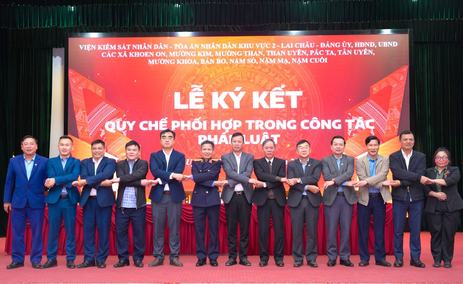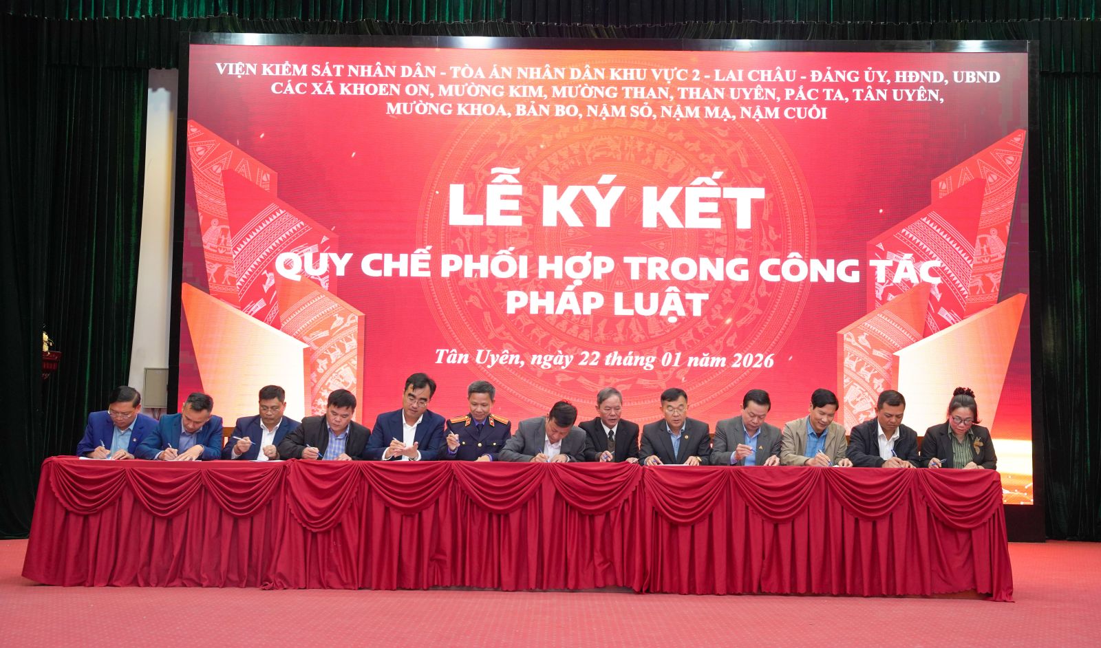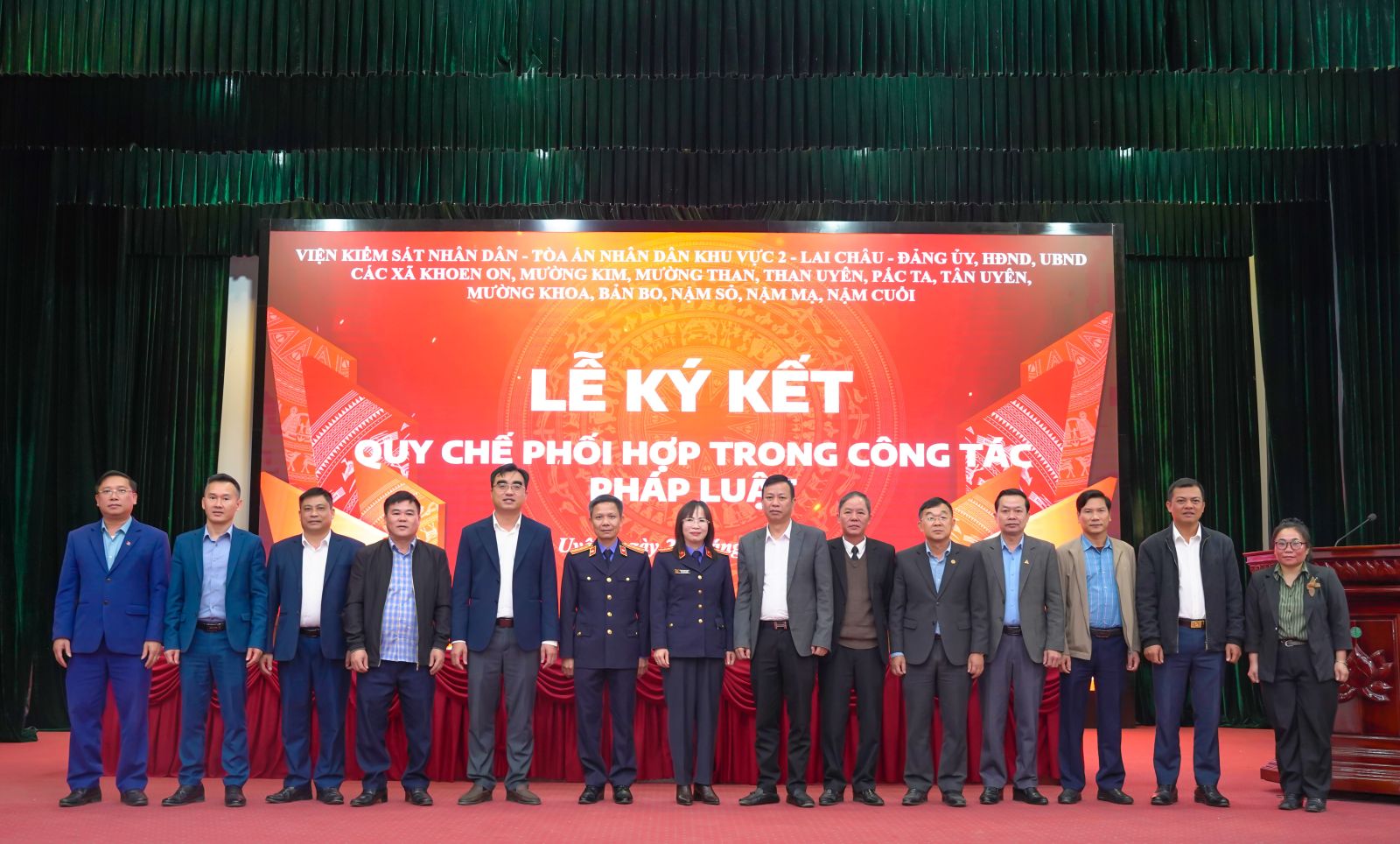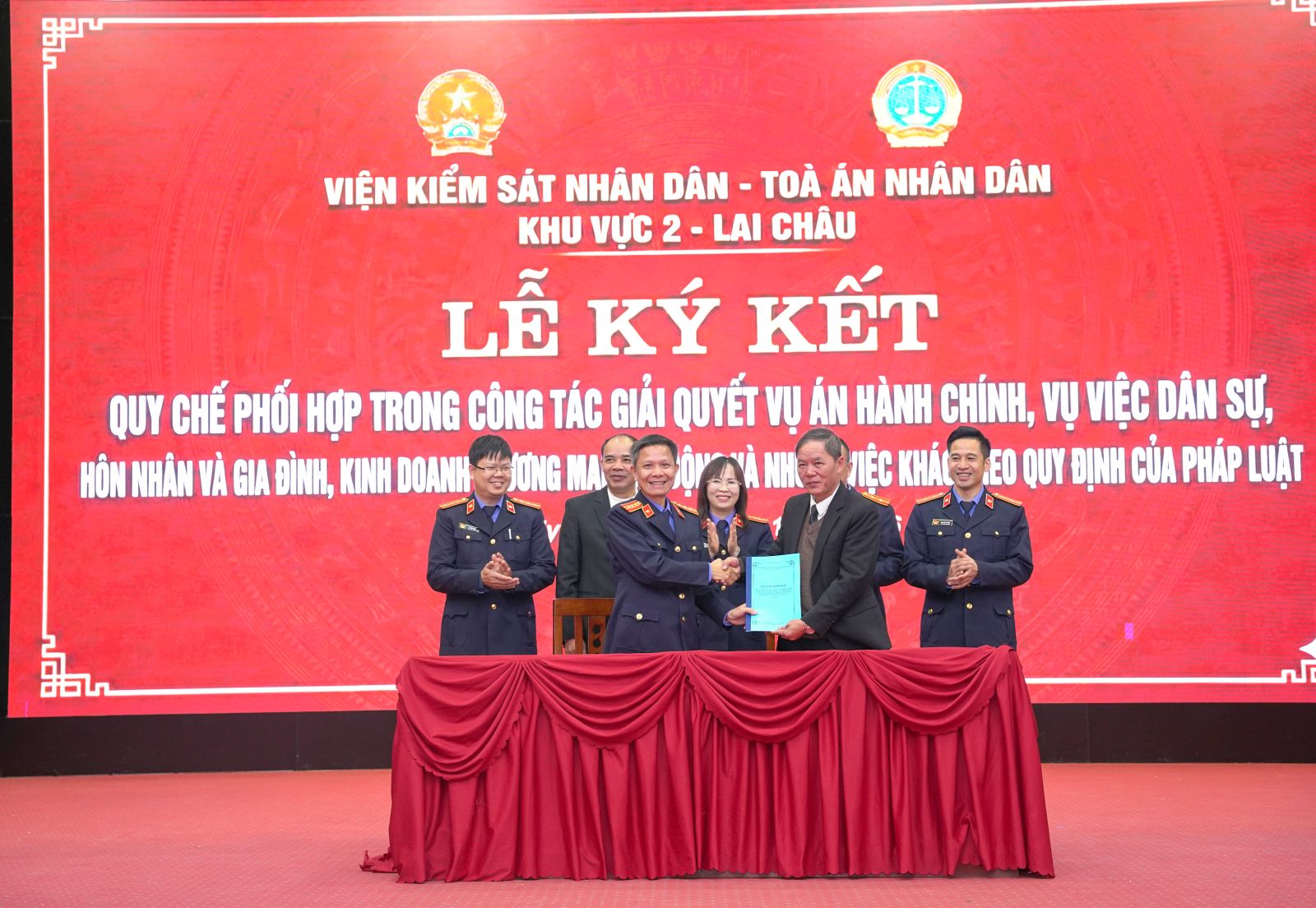 Trước sự chứng kiến của lãnh đạo Viện kiểm sát nhân dân tỉnh, các đại biểu đại diện lãnh đạo Đảng ủy các xã đã ký quy chế phối hợp với Tòa án nhân dân; Viện kiểm sát nhân dân Khu vực 2 Lai Châu.