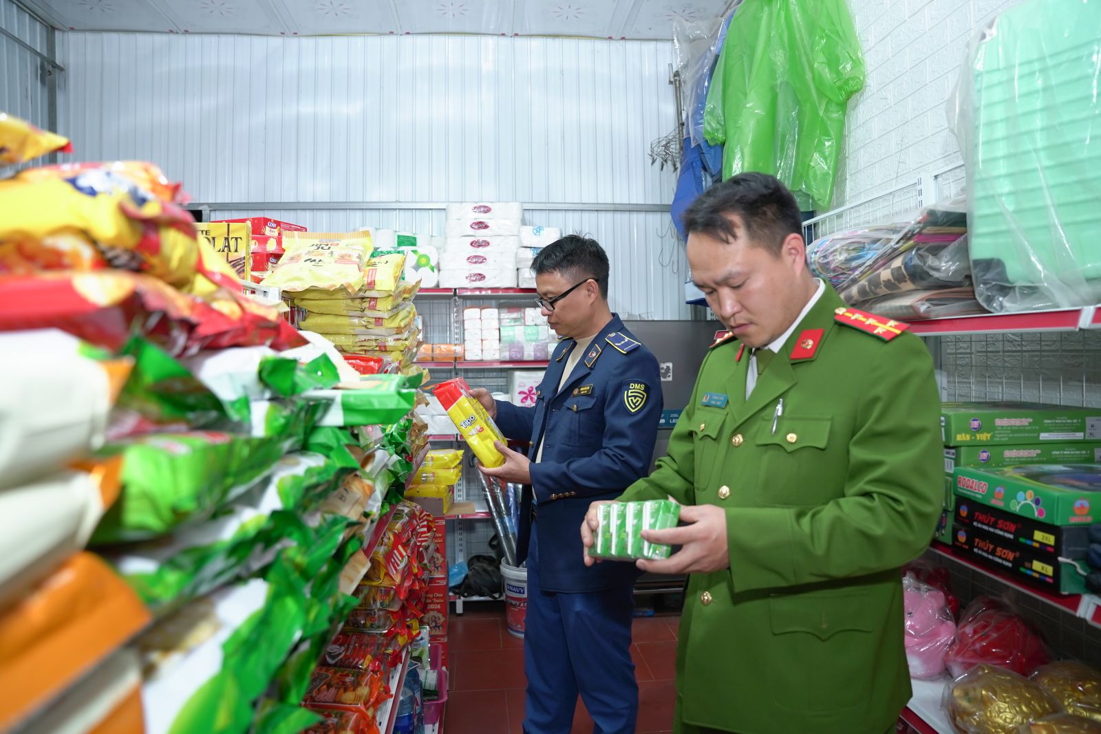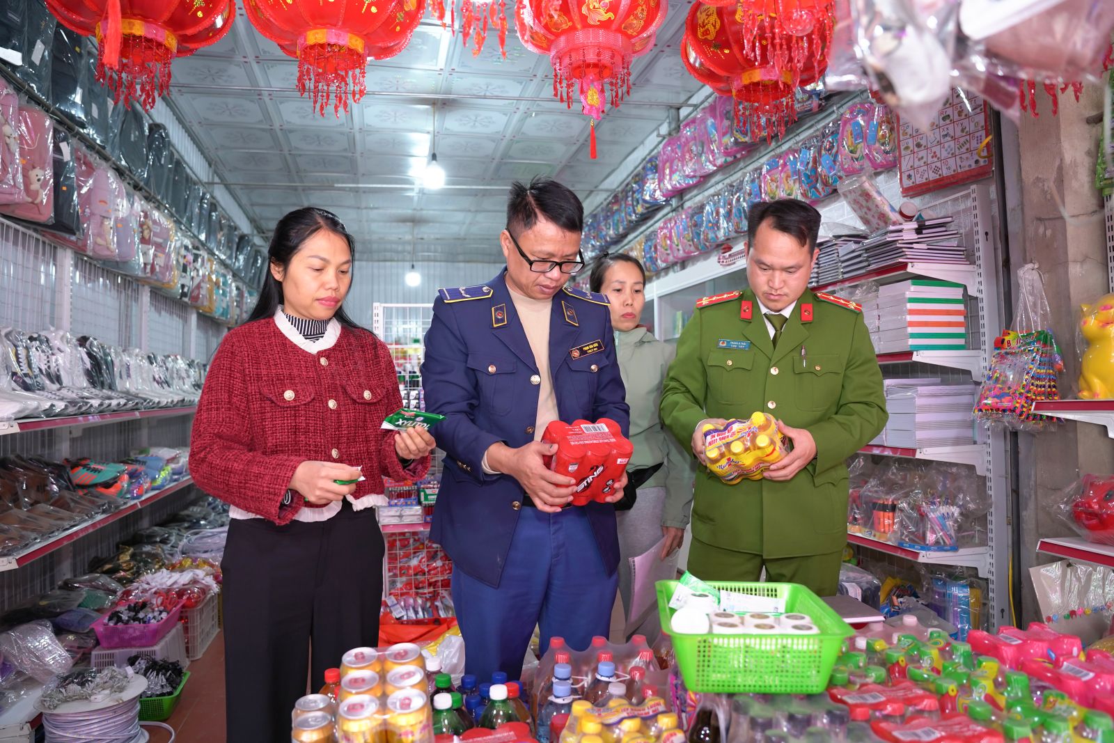 Ảnh: Đoàn kiểm tra liên ngành kiểm tra các hộ kinh doanh bánh kẹo