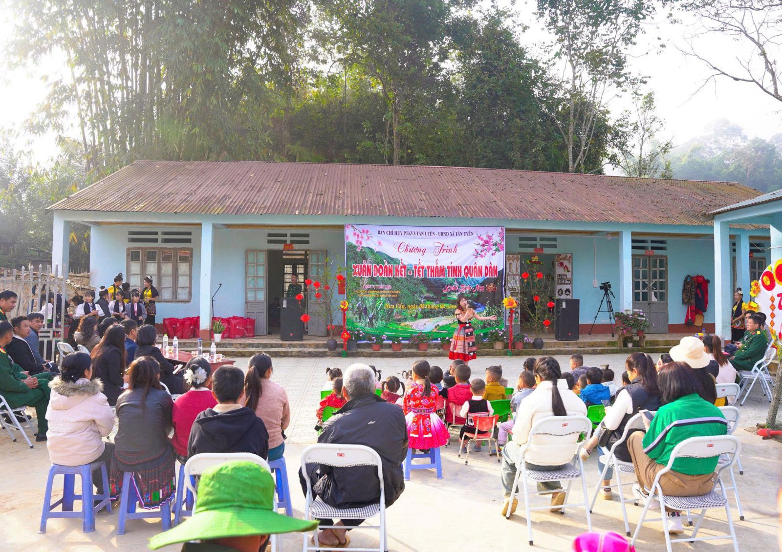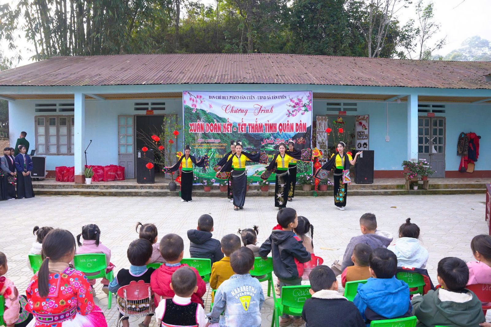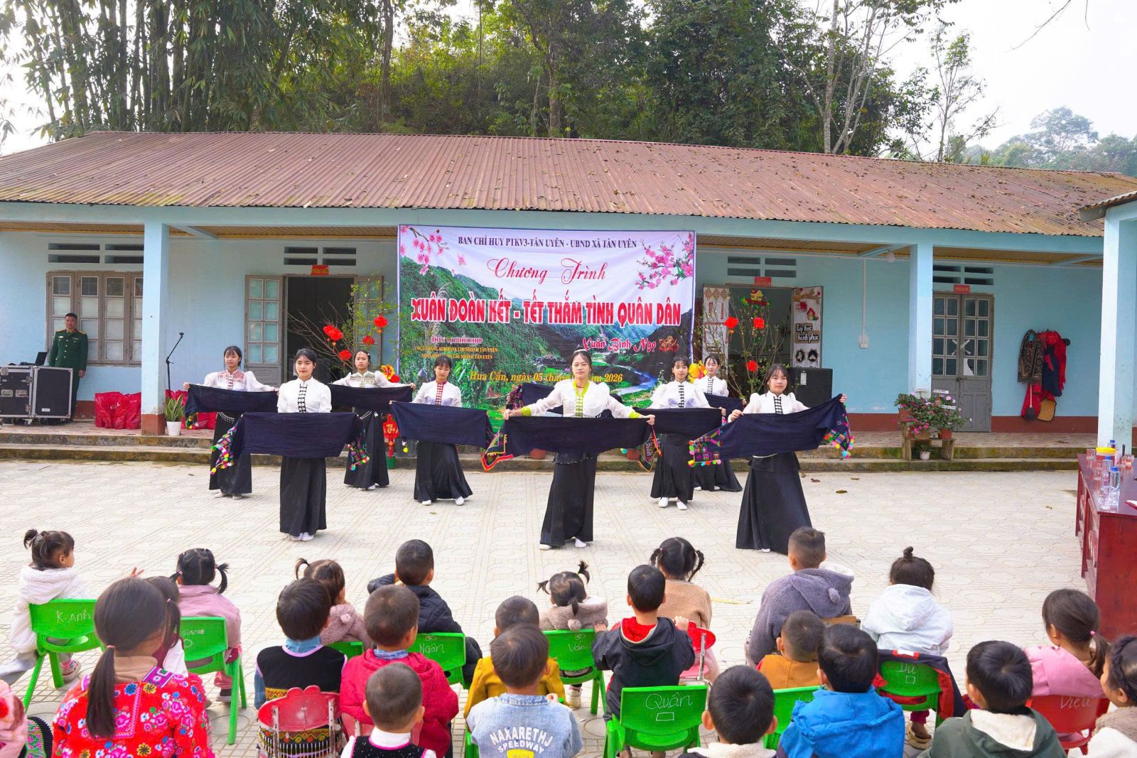 Chương trình “Xuân đoàn kết - Tết thắm tình quân dân” diễn ra trong không khí vui tươi, phấn khởi, đầm ấm, thắm đượm nghĩa tình quân dân với các tiết mục văn nghệ đặc sắc do giáo viên Trường Tiểu học, các em học sinh Trường THCS Nậm cần và thôn Hua Cần biểu diễn, với chủ đề mừng Đảng quang vinh, mừng đất nước bước vào kỷ nguyên mới, kỷ nguyên vươn mình của dân tộc, mừng quê hương Tân Uyên từng bước đổi mới và phát triển, chào Xuân Bính Ngọ 2026, lan tỏa tinh thần đoàn kết quân dân.