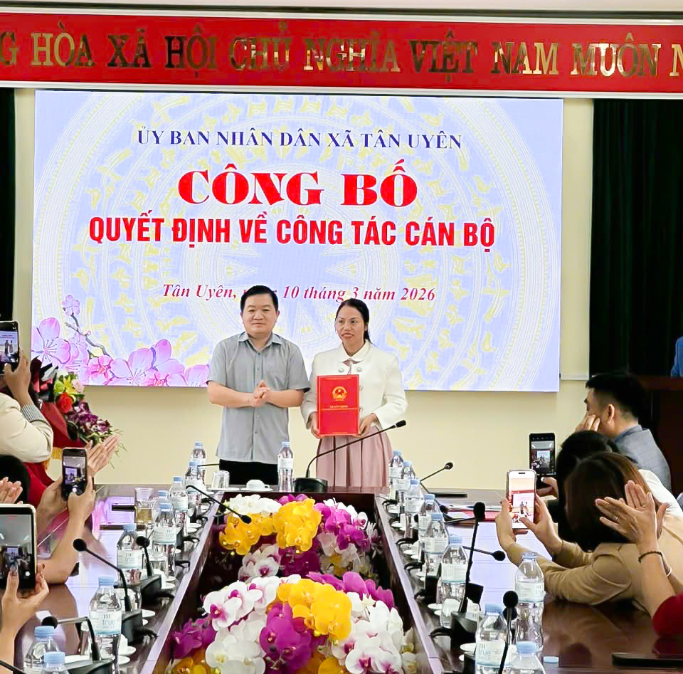Tại hội nghị, đã công bố Quyết định số 360/QĐ-UBND ngày 09 tháng 3 năm 2026 của Chủ tịch UBND xã Tân Uyên về việc bổ nhiệm Phó Giám đốc Trạm Y tế xã Tân Uyên đối với bà Nguyễn Thị Hải Anh, viên chức phụ trách Trạm Y tế xã Tân Uyên, giữ chức Phó Giám đốc Trạm Y tế xã Tân Uyên, thời gian bổ nhiệm là 05 năm, kể từ ngày 10/3/2026.