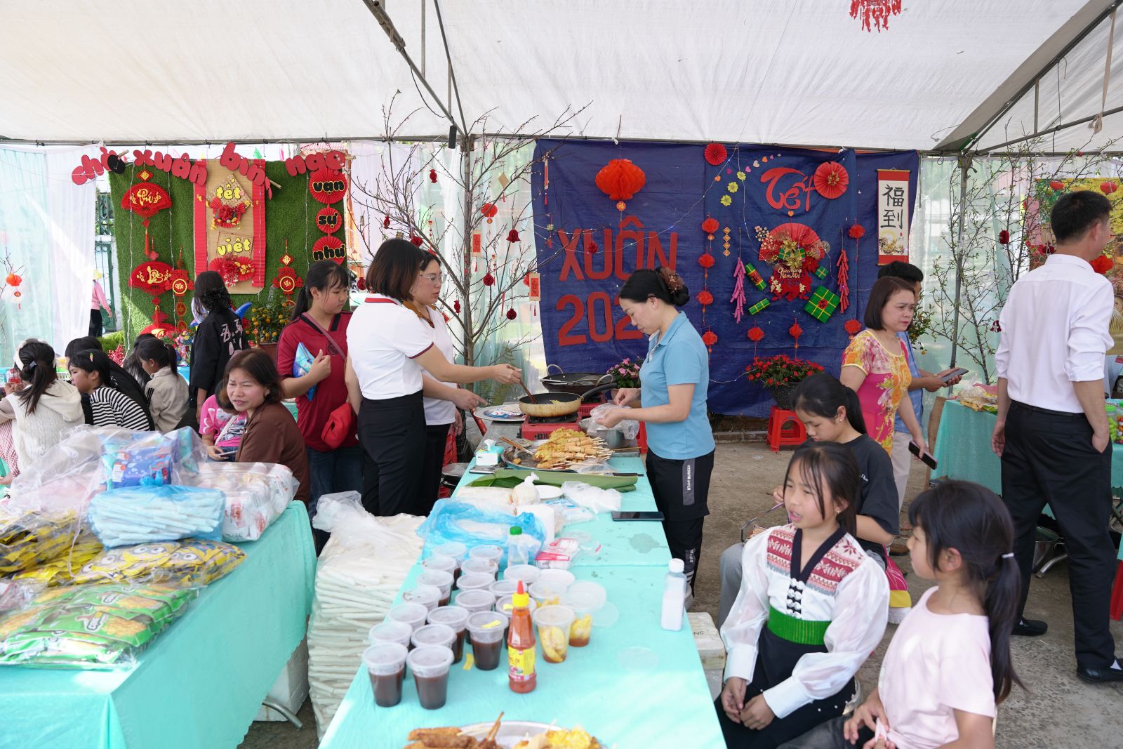 Hội chợ Xuân 2026, được tổ chức với nhiều gian hàng phong phú, mang đậm nét văn hóa truyền thống ngày Tết như: Ẩm thực dân gian, trò chơi dân gian, trưng bày tranh vẽ; các em học sinh đã trực tiếp tham gia chuẩn bị, trang trí gian hàng, giới thiệu sản phẩm và thực hành kỹ năng giao tiếp, mua bán, qua đó rèn luyện kỹ năng sống, tinh thần đoàn kết và sự tự tin.