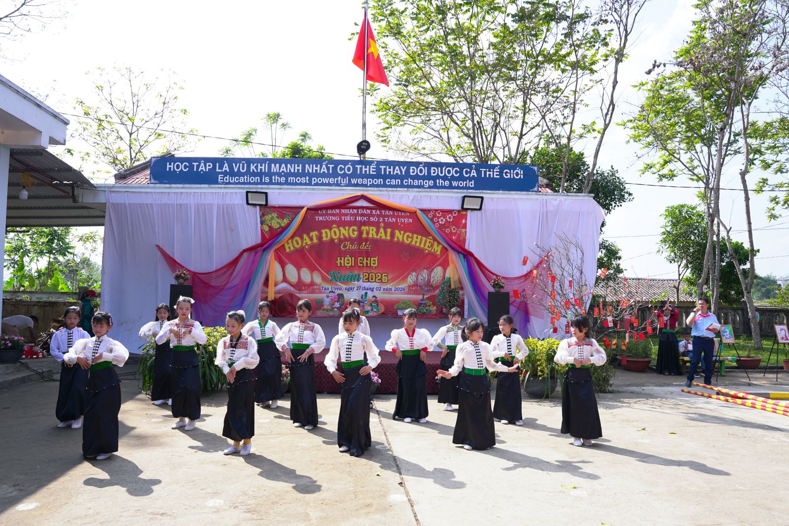 Nhằm tạo sân chơi bổ ích, ý nghĩa cho học sinh, chiều ngày 27/02, tại điểm trường thôn Tân Muôn, Trường Tiểu học số 2 Tân Uyên đã tổ chức thành công hoạt động trải nghiệm với chủ đề “Hội chợ Xuân 2026”. Dự chương trình có đồng chí Nguyễn Minh Hiệu - Ủy viên Ban Chấp hành Đảng bộ tỉnh, Bí thư Đảng ủy; đồng chí Bùi Thị Minh Hải - Ủy viên Ban Thường vụ, Phó Chủ tịch UBND xã; lãnh đạo Văn phòng Đảng ủy; Phòng Văn hóa – xã hội xã; cùng cán bộ, giáo viên, nhân viên, học sinh và phụ huynh.