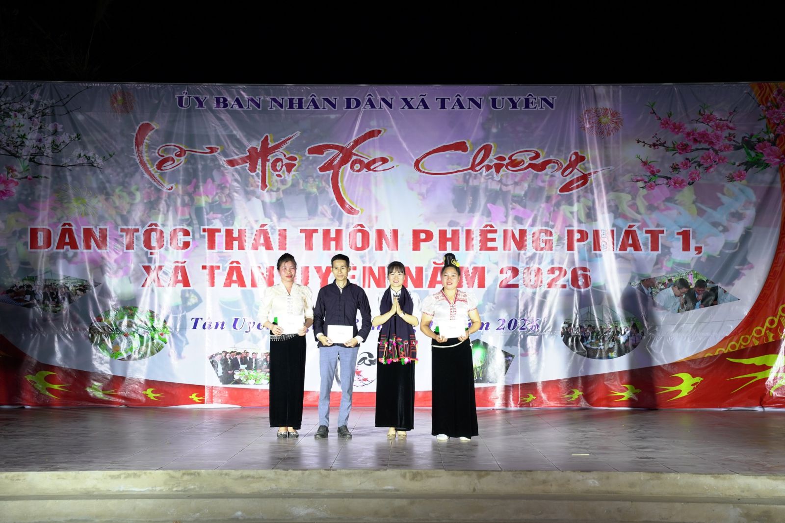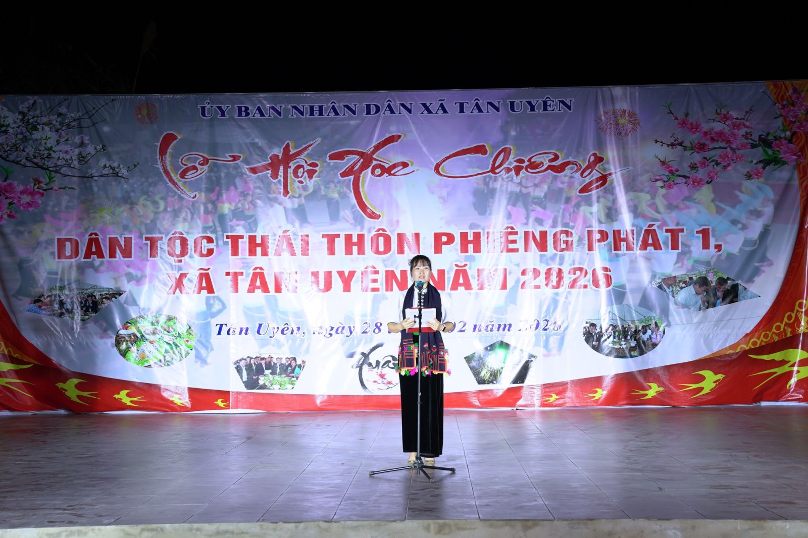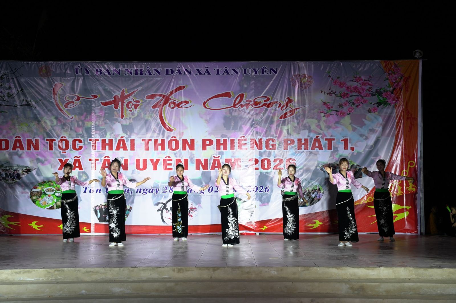 Trong không khí hân hoan của những ngày đầu xuân Bính Ngọ 2026, ngày (28/2), tức 12 tháng Giêng, tại thôn Phiêng Phát 1, UBND xã Tân Uyên tổ chức Lễ hội Xòe Chiêng năm 2026. Dự Lễ hội có đồng chí Lê Đức Dục - Ủy viên Ban Thường vụ Tỉnh ủy, Trưởng Ban Tuyên giáo và Dân vận Tỉnh ủy; đồng chí Nguyễn Minh Hiệu - Ủy viên Ban Chấp hành Đảng bộ tỉnh, Bí thư Đảng ủy; đồng chí Lò Văn Học – Phó Bí thư Thường trực Đảng ủy; đồng chí Chu Văn Thanh – Phó Bí thư, Chủ tịch UBND xã; các đồng chí Thường trực HĐND – UBND – UBMTTQVN xã; các đồng chí trong Ban Thường vụ Đảng ủy; lãnh đạo các cơ quan, ban, ngành, đoàn thể chính trị - xã hội xã; các thôn, bản và đông đảo Nhân dân và du khách thập phương về tham dự Lễ hội.