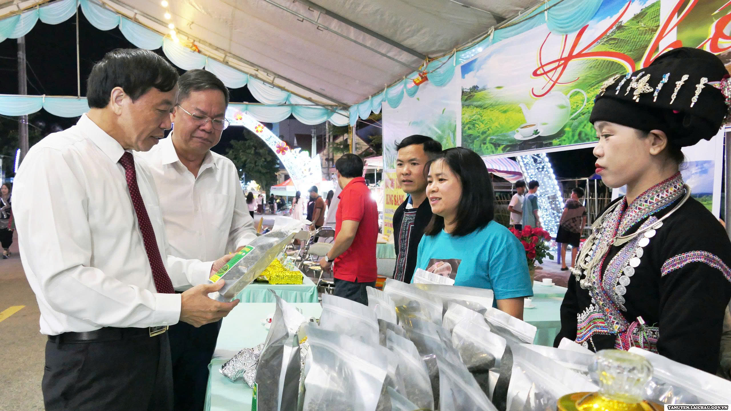 Ảnh: Đại biểu tham quan sản phẩm chè tại Lễ hội