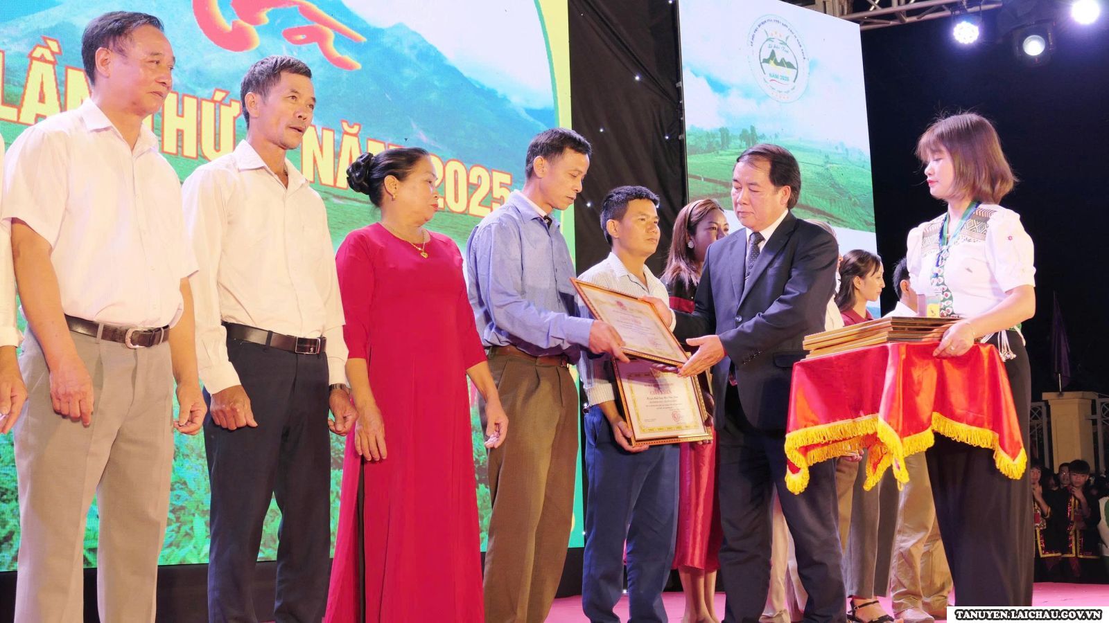 Dịp này, UBND huyện tặng Giấy khen cho 15 tập thể, hộ gia đình có thành tích xuất sắc trong lĩnh vực sản xuất, chế biến sản phẩm chè trên địa bàn huyện.