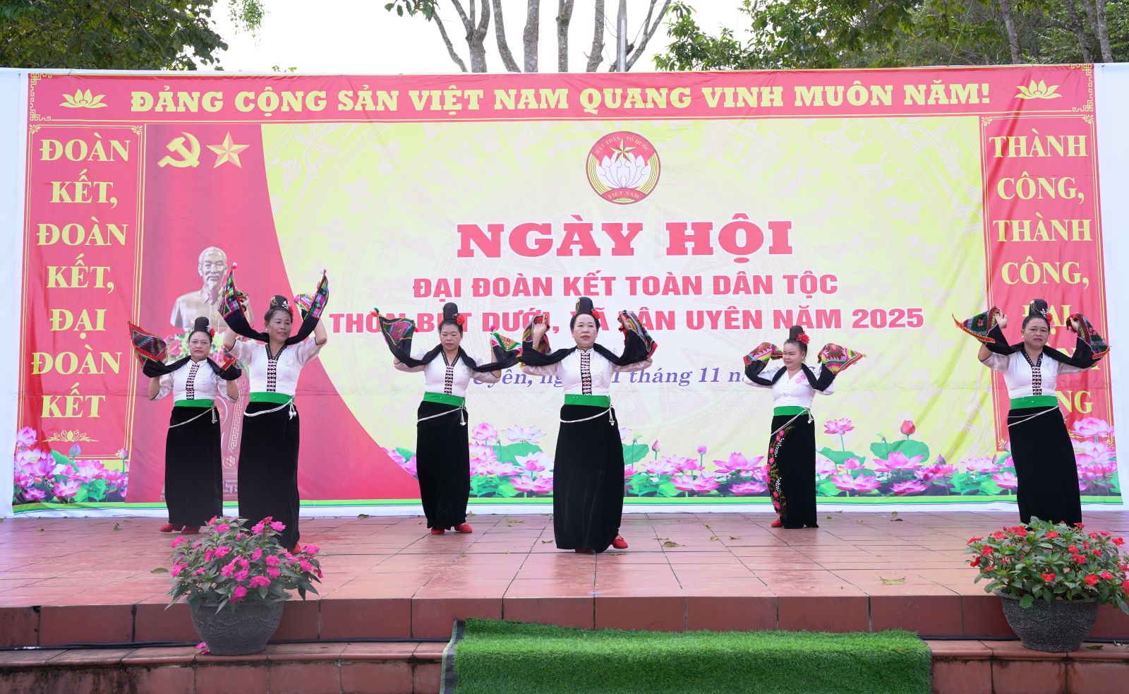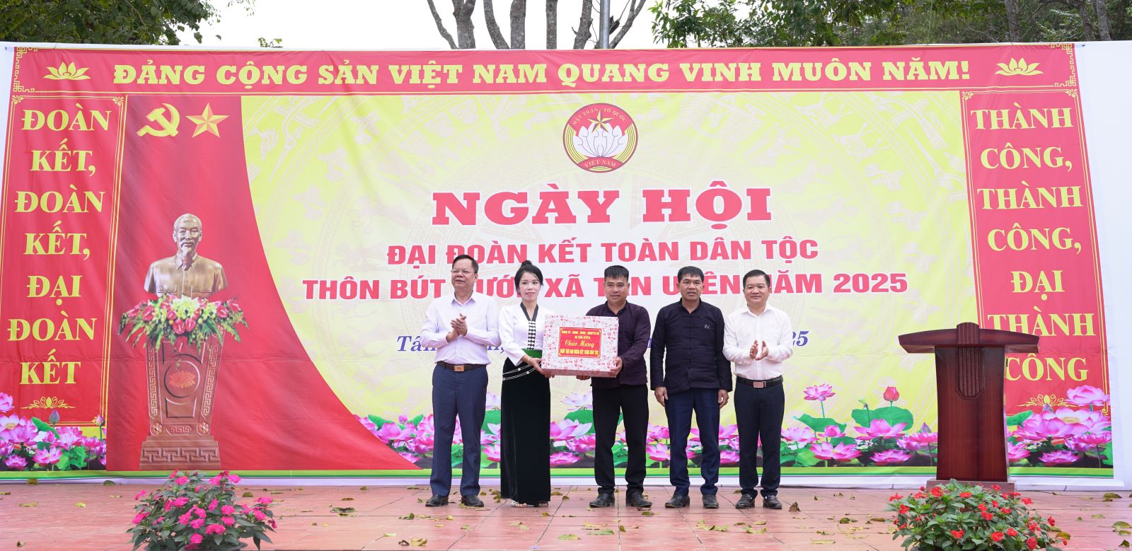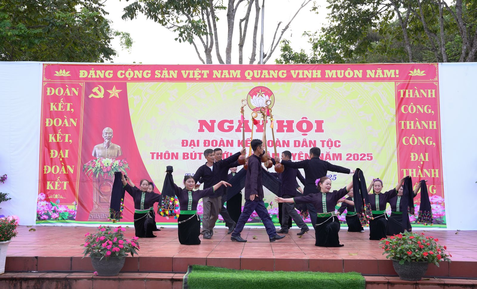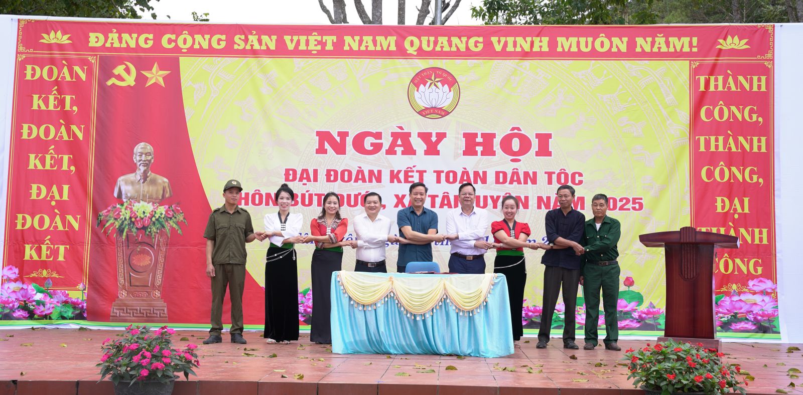 Phát biểu tại Ngày hội, đồng chí Lê Đức Dục - Ủy viên Ban Thường vụ, Trưởng Ban Tuyên giáo và Dân vận Tỉnh ủy biểu dương và ghi nhận những kết quả mà Nhân dân thôn Bút Dưới đã đạt được trong năm qua. Để tiếp tục khơi dậy sức mạnh đại đoàn kết toàn dân tộc, phát huy tinh thần thi đua lao động sáng tạo trong mọi tầng lớp Nhân dân, tích cực tham gia xây dựng và bảo vệ quê hương, đất nước trong tình hình mới; triển khai có hiệu quả Nghị quyết đại hội Đảng các cấp; đồng chí đề nghị Nhân dân trong thôn tiếp tục củng cố, phát huy khối đại đoàn kết toàn dân tộc, xây dựng đời sống văn hóa, giữ gìn bản sắc dân tộc Thái, nêu cao tinh thần “dân biết, dân bàn, dân làm, dân kiểm tra, dân thụ hưởng”. Đẩy mạnh phát triển kinh tế hộ gia đình, tận dụng lợi thế về đất đai, cây chè, nông – lâm nghiệp; khuyến khích phát triển sản phẩm đặc trưng của địa phương gắn với du lịch cộng đồng. Thực hiện hiệu quả các cuộc vận động và phong trào thi đua yêu nước, duy trì thôn văn hóa, phấn đấu 95% hộ gia đình văn hóa, 100% hộ thu gom rác thải đúng nơi quy định, không có hộ vi phạm pháp luật. Tăng cường ứng dụng chuyển đổi số, đưa công nghệ vào quản lý, sản xuất; mở rộng giao lưu, học hỏi kinh nghiệm giữa các thôn trong xã. Phát huy vai trò giám sát, phản biện xã hội, góp phần xây dựng chi bộ, hệ thống chính trị cơ sở trong sạch, vững mạnh; giữ vững an ninh chính trị, trật tự an toàn xã hội tại khu dân cư…