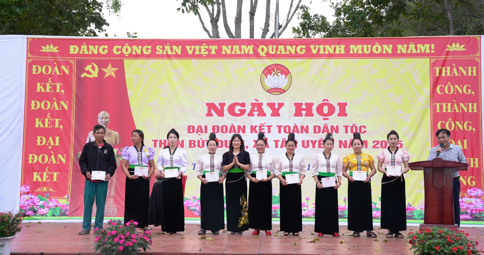 Tại Ngày hội, đã ôn lại truyền thống 95 năm Ngày thành lập Mặt trận Dân tộc thống nhất Việt Nam và báo cáo kết quả khối đại đoàn kết toàn dân tộc, các cuộc vận động, các phong trào thi đua yêu nước năm 2025. Thôn Bút dưới có 166 hộ với 555 khẩu, 98% là dân tộc Thái. Để thực hiện hiệu quả phong trào Toàn dân đoàn kết xây dựng đời sống văn hóa, gắn với xây dựng nông thôn mới, đô thị văn minh; thời gian qua thôn đã đẩy mạnh công tác tuyên truyền các chủ trương đường lối của Đảng, chính sách, pháp luật của Nhà nước, Nghị quyết Đại hội Đảng các cấp, quy ước, hương ước nhờ vậy Nhân dân đã tích cực chuyển đổi cơ cấu cây trồng, vật nuôi, thực hiện thâm canh tăng vụ. Tổng diện tích trồng cây lương thực thôn đạt trên 500 ha, đạt 100% kế hoạch; sản lượng chè búp tươi đạt 820 tấn. Trong phong trào “Chung sức xây dựng nông thôn mới”, đô thị văn minh đã xuất hiện nhiều phong trào như “Ngày thứ Bảy xanh – sạch – đẹp”, năm 2025 thôn đã tổ chức được 42 buổi với trên 1 nghìn 800 lượt người tham gia. Phong trào nhân dân giúp nhau phát triển kinh tế, xóa đói giảm nghèo được đẩy mạnh, thôn duy trì 02 tổ tiết kiệm vay vốn qua Ngân hàng CSXH với 107 thành viên, tổng dư nợ trên 7 tỷ đồng. Phong trào “Toàn dân đoàn kết xây dựng đời sống văn hóa” được duy trì tốt, năm 2025 thôn có 151 hộ đạt danh hiệu gia đình văn hóa; tỷ lệ người dân tham gia bảo hiểm y tế đạt 87%; các phong trào thể dục, thể thao, văn hóa, văn nghệ, giữ gìn bản sắc văn hóa dân tộc Thái được duy trì, thực hiện tốt các quy ước, nếp sống văn minh, bài trừ hủ tục lạc hậu. An ninh trật tự được giữ vững.
