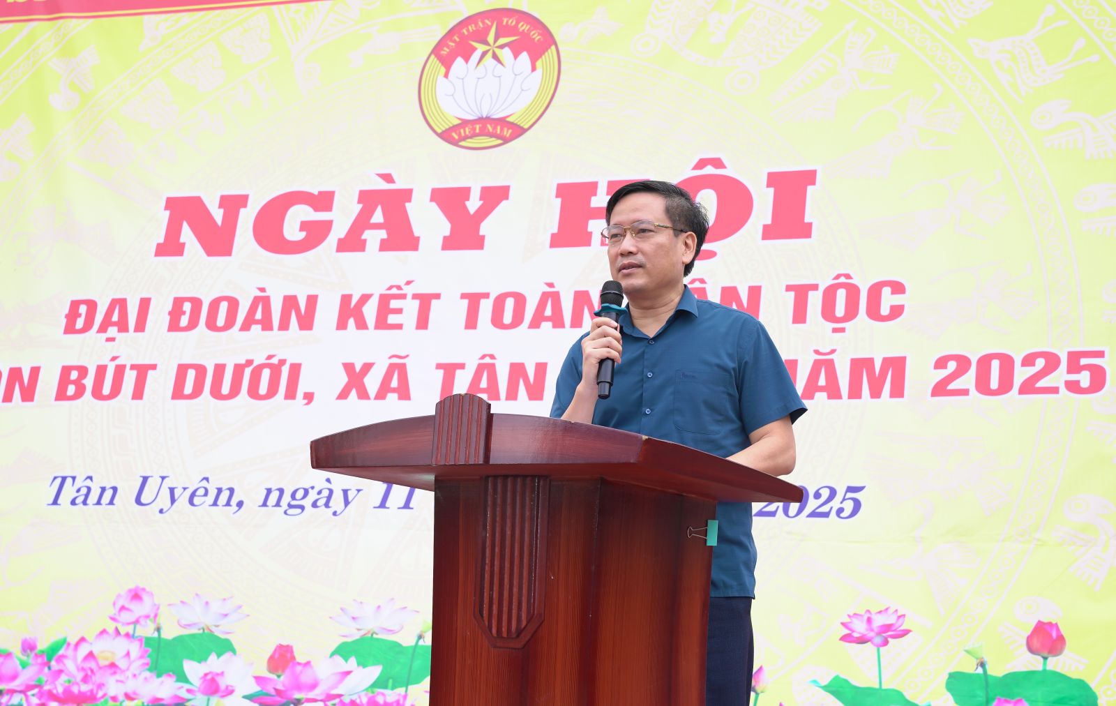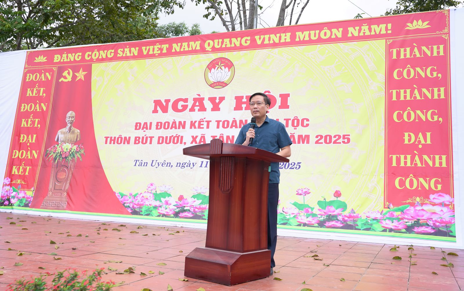 Chào mừng kỷ niệm 95 năm Ngày truyền thống Mặt trận Tổ quốc Việt Nam (18/11/1930 – 18/11/2025. Sáng ngày 11/11/2025, thôn Bút Dưới, xã Tân Uyên tổ chức “Ngày hội Đại đoàn kết toàn dân tộc” năm 2025; đây là thôn được Ủy ban Mặt trận Tổ quốc Việt Nam xã Tân Uyên chọn tổ chức điểm. Dự Ngày hội có đồng chí Lê Đức Dục, Ủy viên Ban Thường vụ Tỉnh ủy, Trưởng Ban Tuyên giáo và Dân vận Tỉnh ủy. Về phía xã Tân Uyên có đồng chí Dương Đình Đức - Ủy viên Ban Chấp hành Đảng bộ tỉnh, Bí thư Đảng ủy, Chủ tịch HĐND xã; đồng chí Chu Văn Thanh – Phó Bí thư, Chủ tịch Ủy ban nhân dân xã; lãnh đạo Thường trực Hội đồng nhân dân, Ủy ban nhân dân, Ủy ban Mặt trận Tổ quốc Việt Nam xã; lãnh đạo các ban, ngành, đoàn thể xã; Bí thư, Trưởng Ban công tác Mặt trận các thôn cùng đông đảo Nhân dân thôn Bút Dưới và du khách về tham dự Ngày hội.