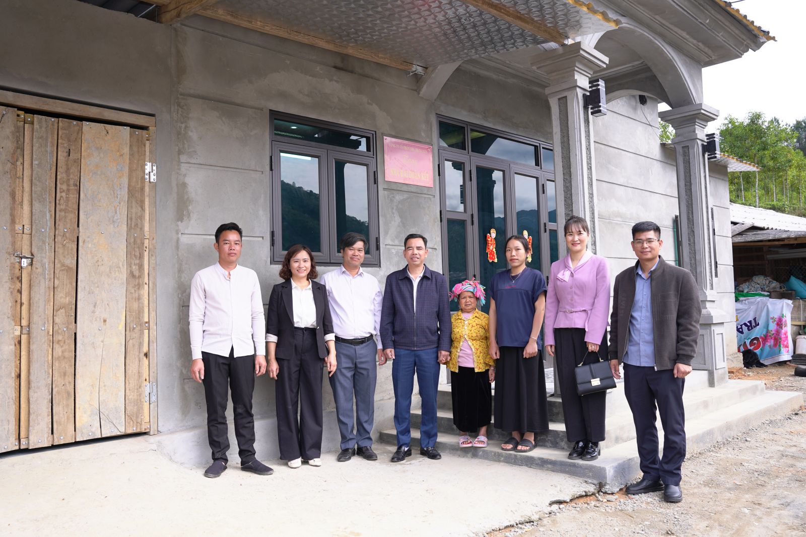 Ảnh: Đoàn công tác gắn biển và chụp ảnh cùng gia đình bên căn nhà mới