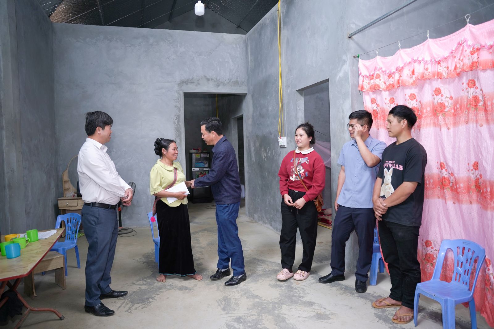 Ảnh: Đồng chí Nguyễn Minh Hiệu - Ủy viên BCH Đảng bộ tỉnh và đoàn công tác thăm hỏi, động viên gia đình ông Lò Văn Sơn thôn Hua Cần